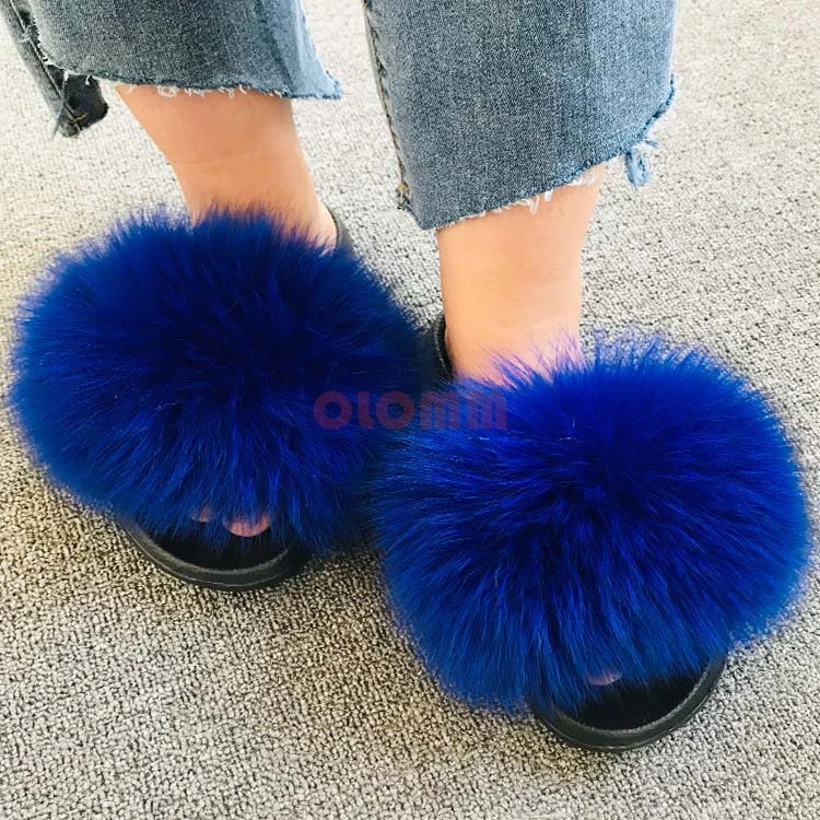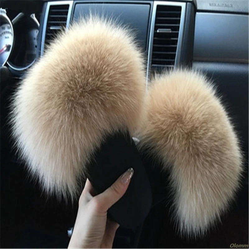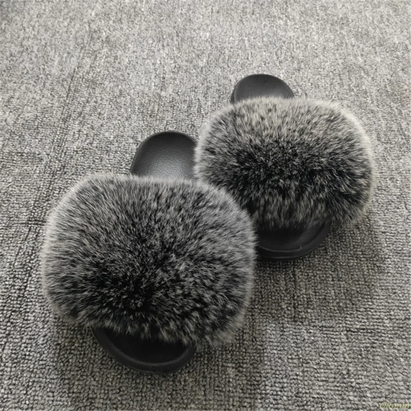 Женские меховые шлепанцы, сандалии из натурального Лисьего меха, с открытым носком, сланцы, пушистая Фурия, меховые шлепанцы, большой размер 45, для зимы