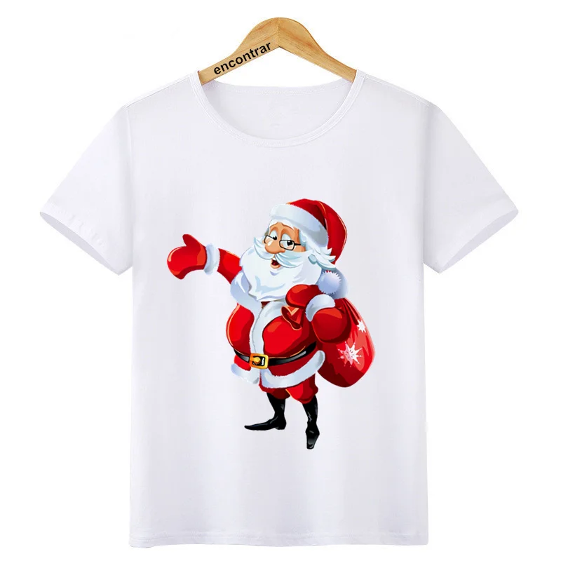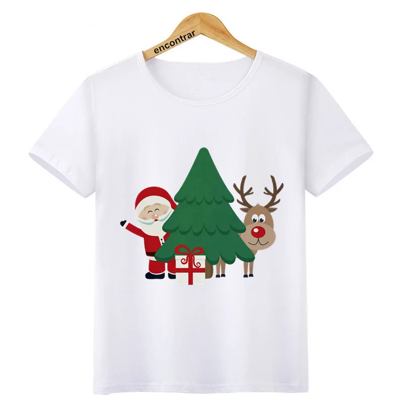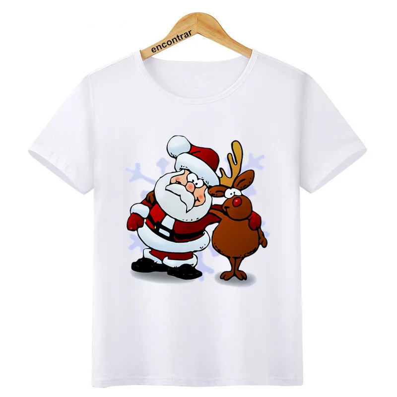 Забавная Рождественская футболка с Санта и олень для девочек и мальчиков, детская модная футболка с коротким рукавом, детская белая футболка, Топы, одежда, BAL609