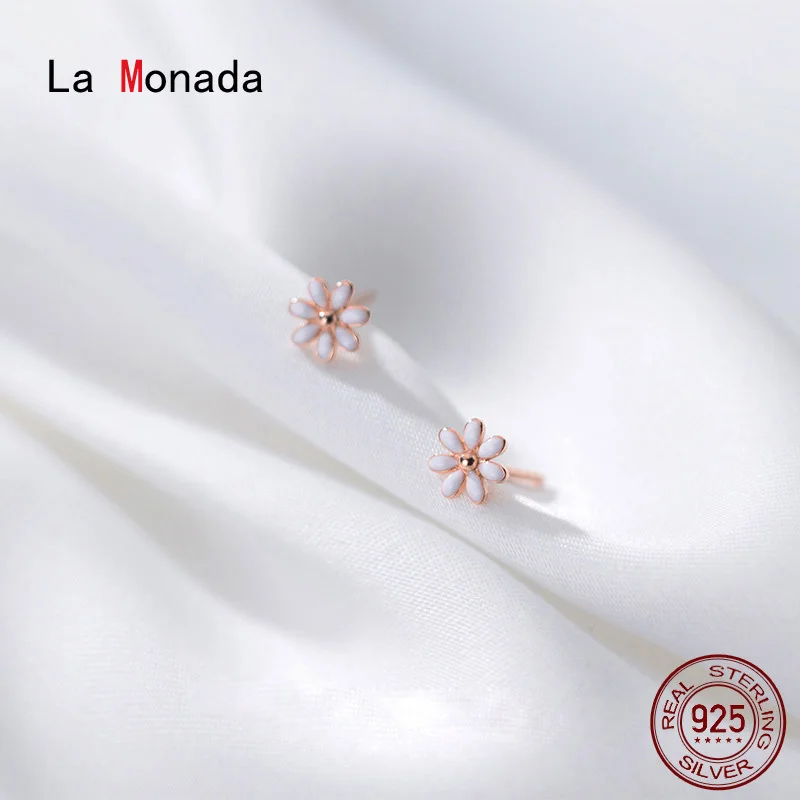 Женские серьги-гвоздики La Monada, серьги-гвоздики из стерлингового серебра 925 пробы с белым цветком, серьги-гвоздики из стерлингового серебра 925 пробы