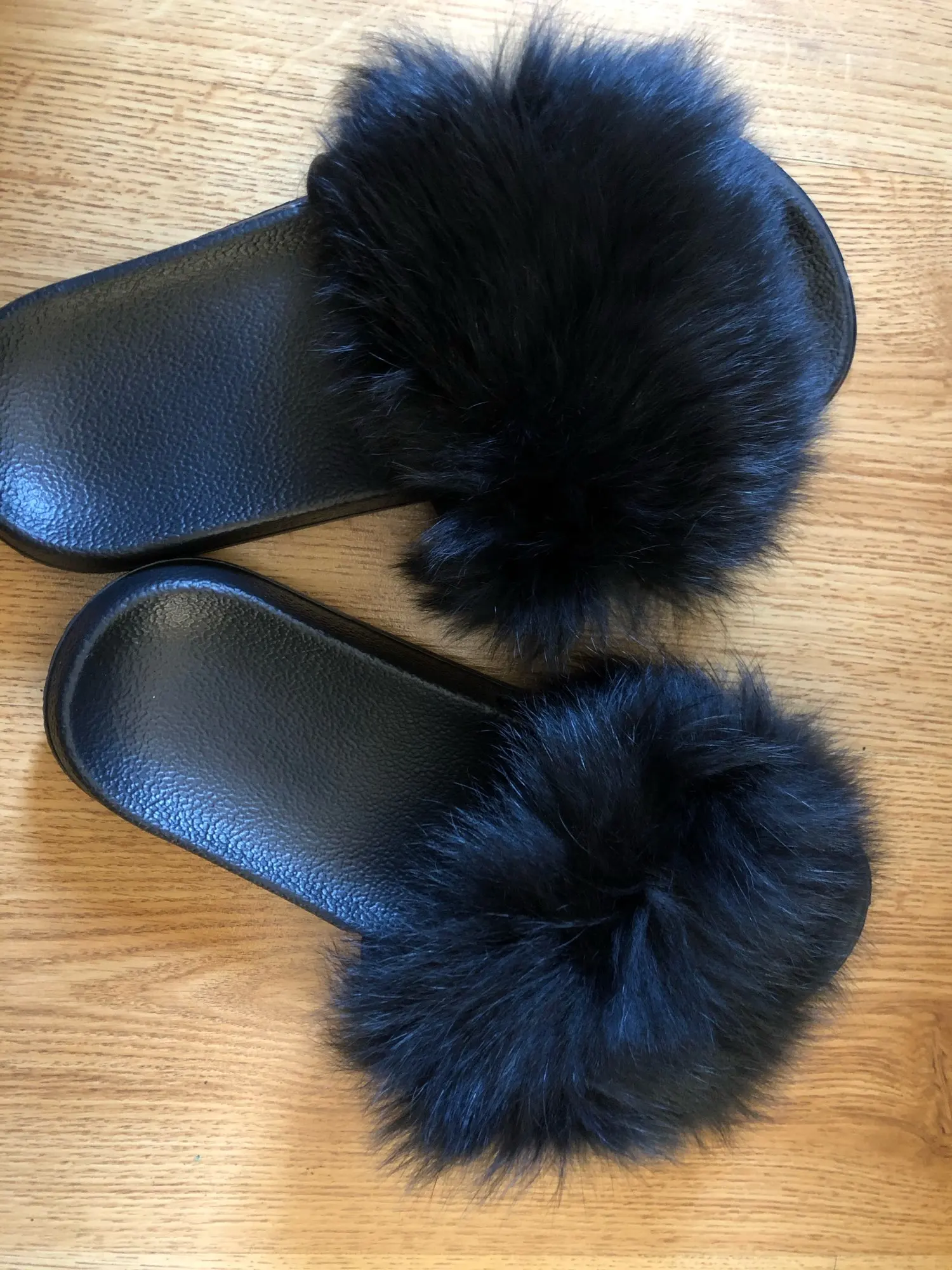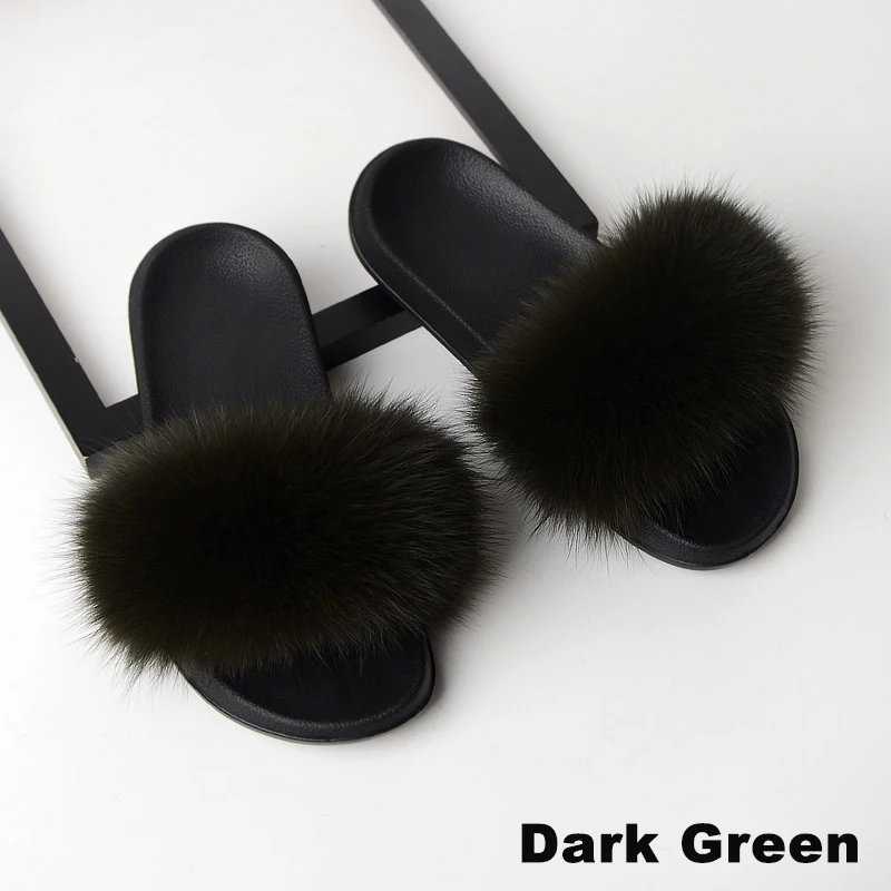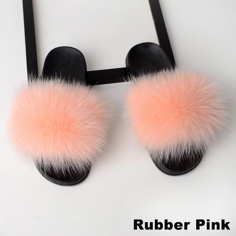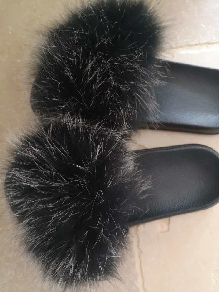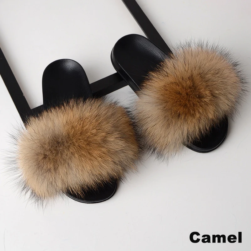 Тапки женские из натурального Лисьего меха, мех енота, пушистые тапочки, мягкая Летняя обувь на плоской подошве, большой размер 45