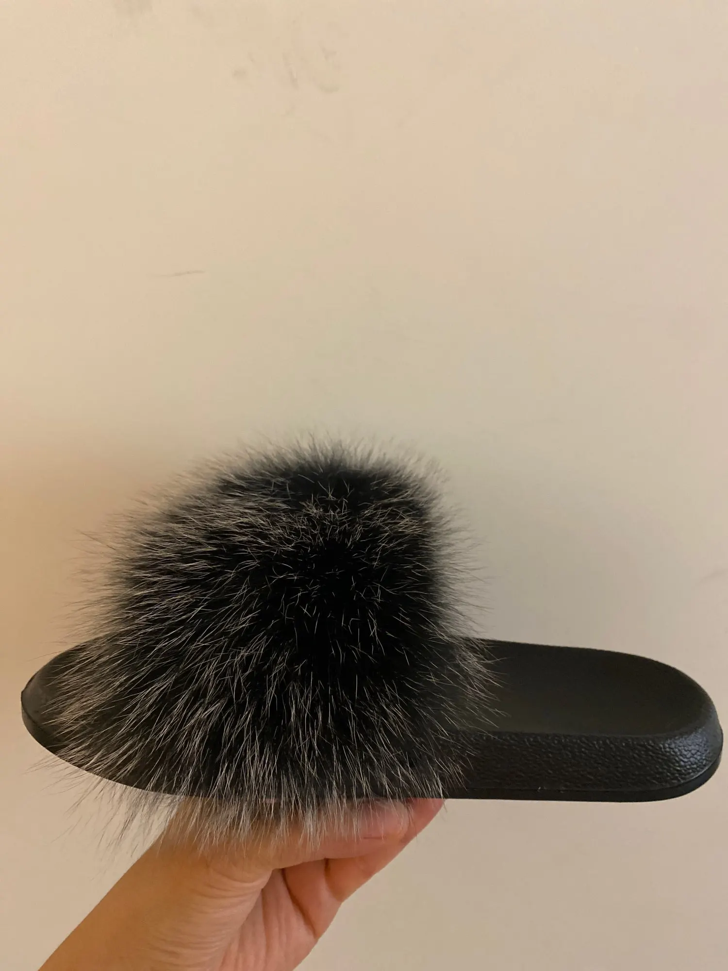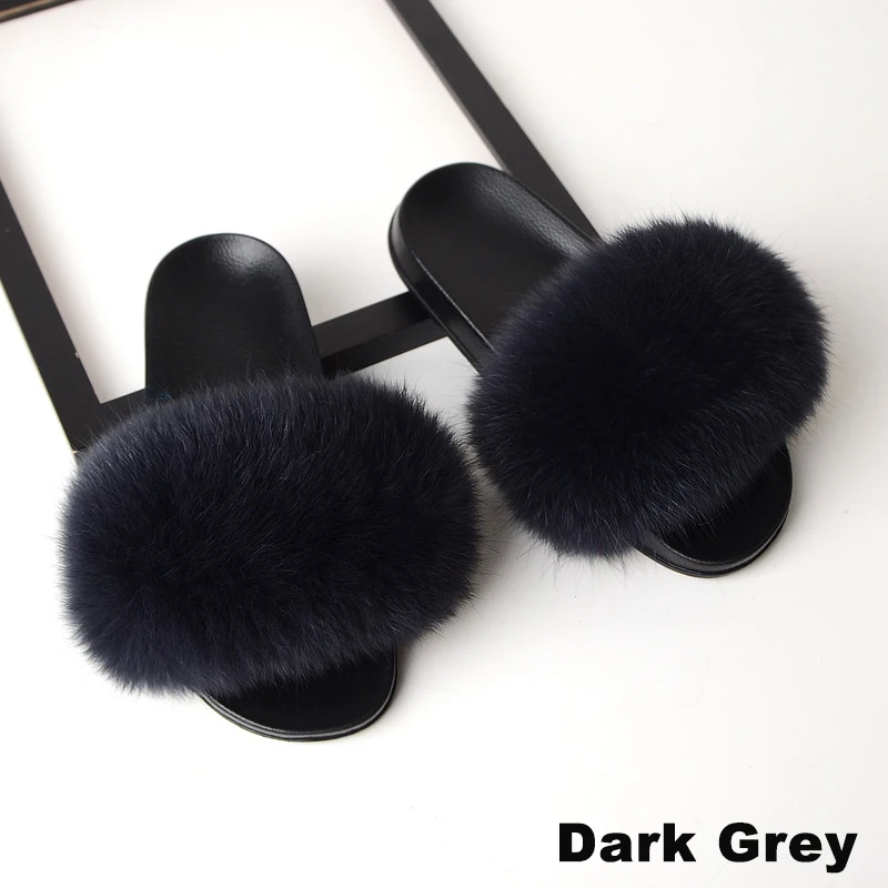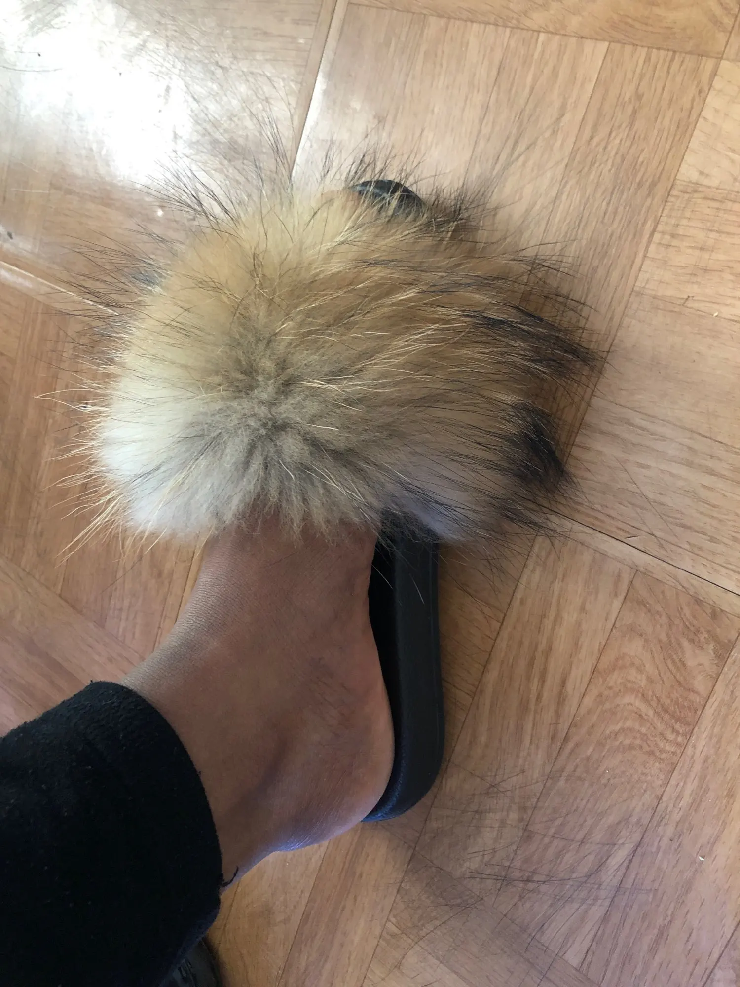 Тапки женские из натурального Лисьего меха, мех енота, пушистые тапочки, мягкая Летняя обувь на плоской подошве, большой размер 45