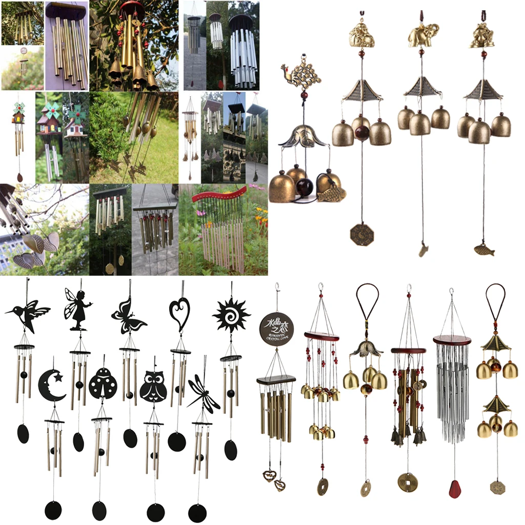 Висит Медь ветряной колокольчик с украшением в форме металлических трубок классический Восточный висит Лаки колокол передвижная уличная Feng Shui орнамент садовый Декор для дома