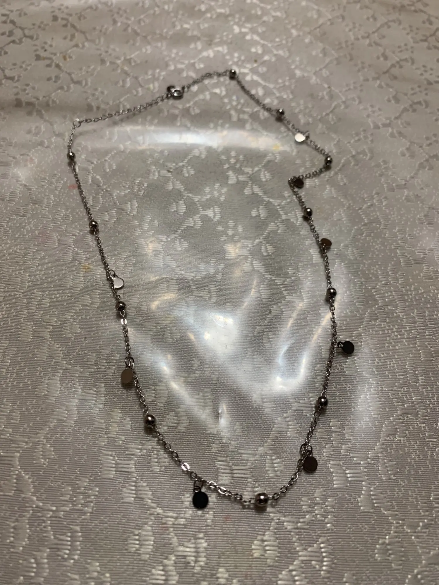 Очень красивое ожерелье! Он говорит, что это серебро, и я надеюсь, что это действительно. Он приходит немного дольше, чем вы можете видеть на фото, но я сумел подключить его выше, чтобы он больше приклеился к шее.