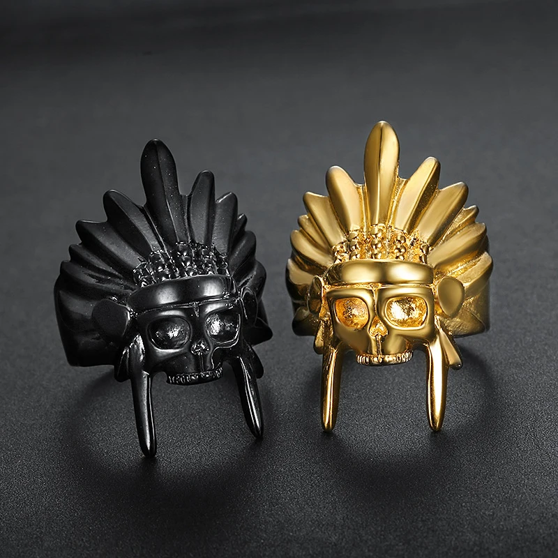 Мужские кольца в виде черепа вождя племени из нержавеющей стали 316...