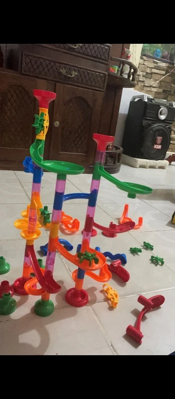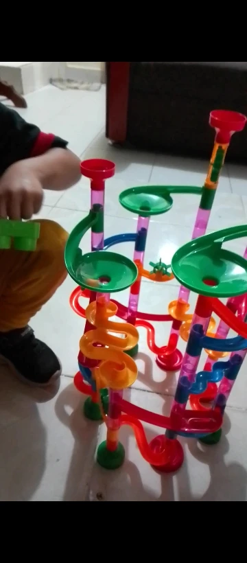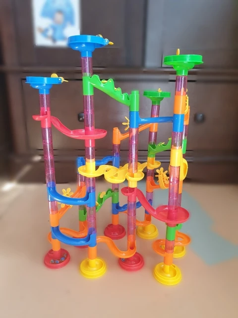 Эта мраморная гоночная игрушка-это взрыв! 105 шт DIY строительные блоки-хорошая развивающая игрушка для вашей семьи. Мраморная гоночная дорожка-это отличный предмет, чтобы научить маленьких детей импульсу и свойствам гравитации через мрамор, идущий на трассе. Вы можете сложить их так, как вам нравится, чтобы ваши дети могли строить блоки по-разному каждый раз с их воображением. Это отличная игра для вашей семьи.