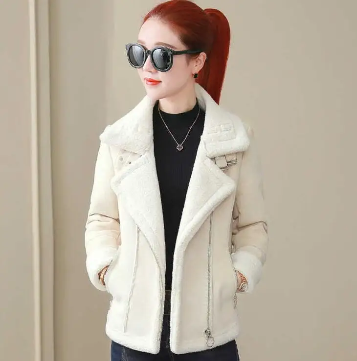 Женское теплое шерстяное пальто, корейская модная замшевая парка с отложным воротником и длинным рукавом, на молнии, в овечьей шерсти, верхняя одежда на осень и зиму