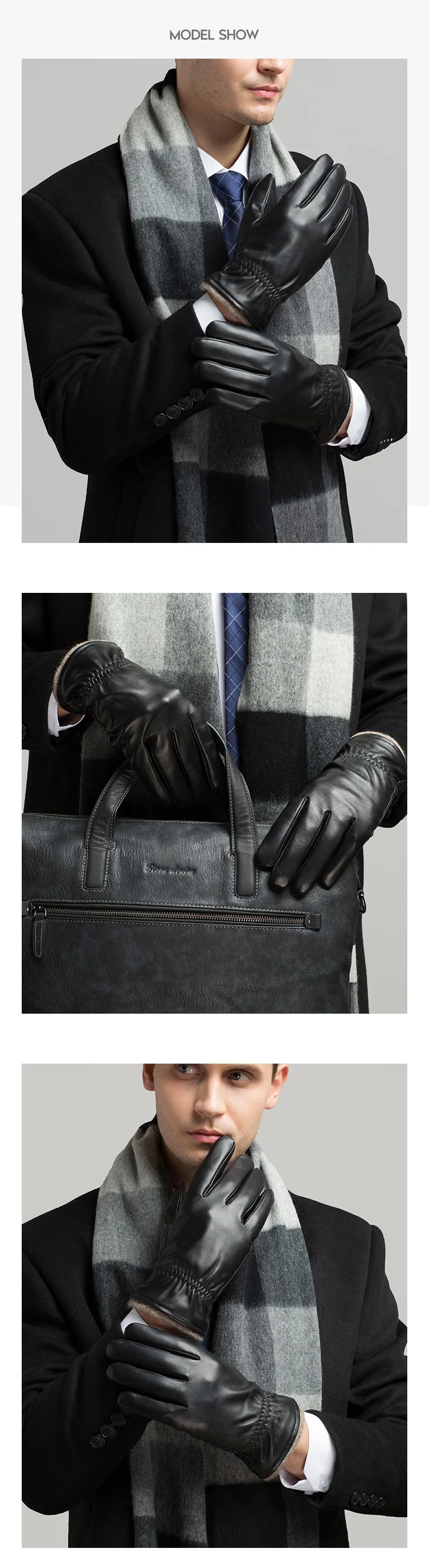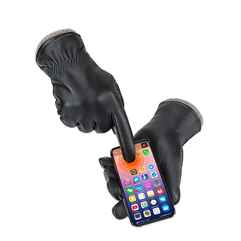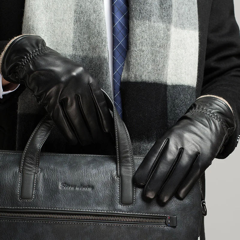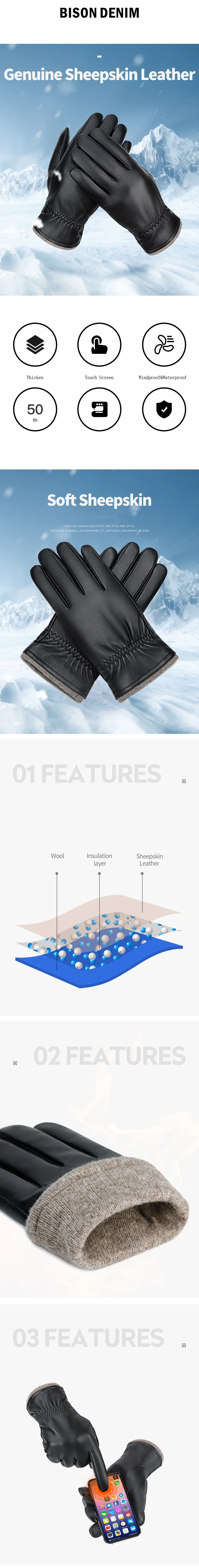 Мужские перчатки BISON DENIM, зимние перчатки из натуральной овечьей кожи с сенсорным экраном, ветрозащитные водонепроницаемые кожаные перчатки S056