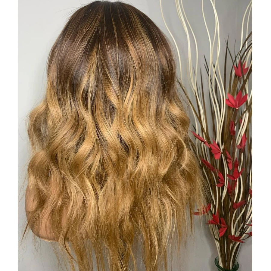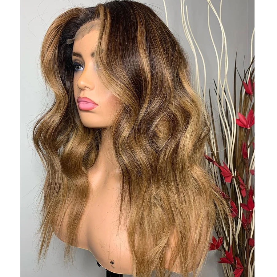Парик из натуральных волос медовый блонд с эффектом деграде, волнистый, 13x6, с волосами младенца, 360 фронтальный, каштановый, без клея, Шелковый топ, полная повязка на голову