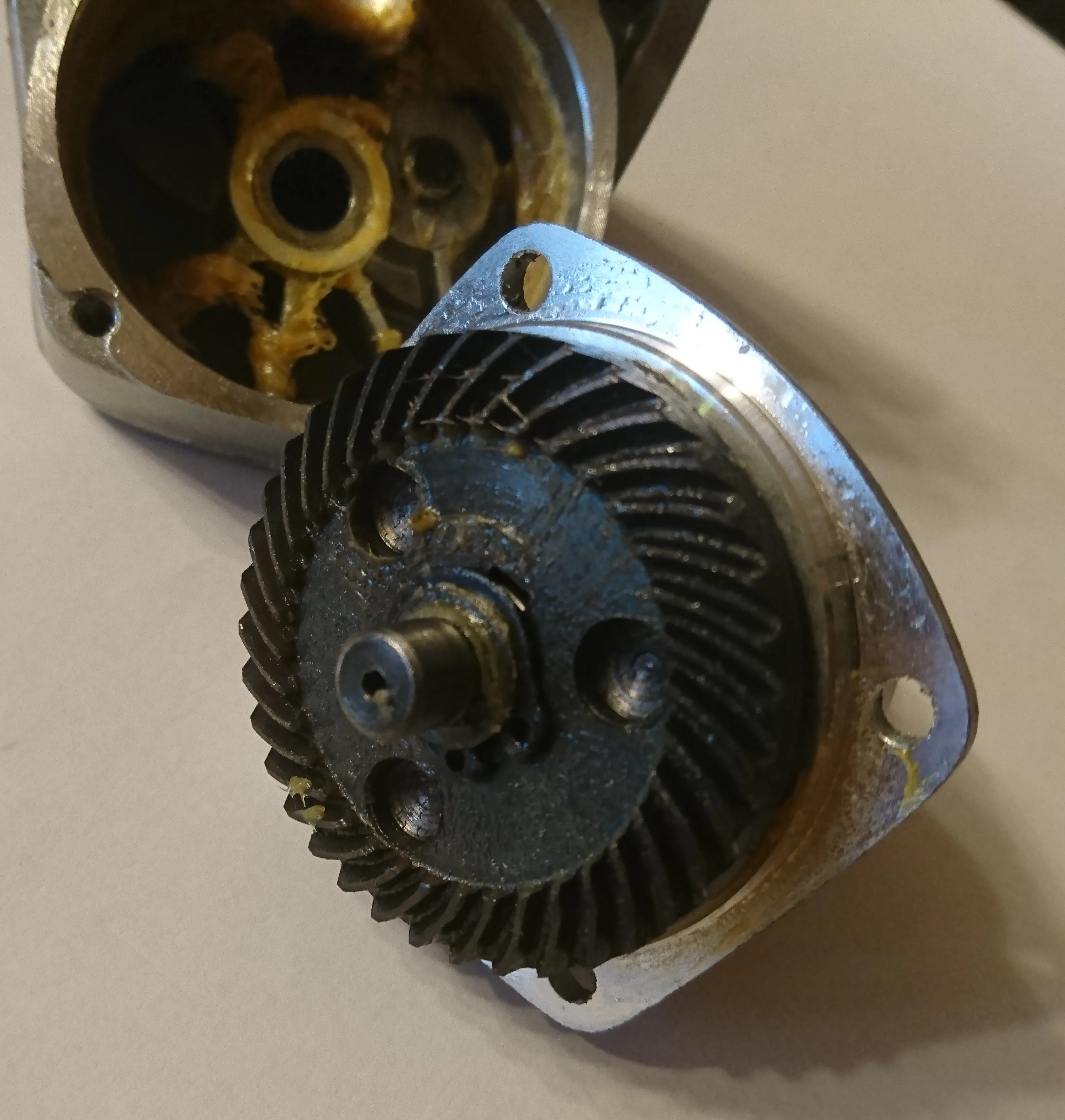пришло немного бу. маркером подписан знак вопроса на корпусе. корпус неправильно собран закусило резинку в одном месте. вал ржавый. ну а что вы хотели за 2к рублей. впринципе осталось найти круги на маленький вал и пробывать