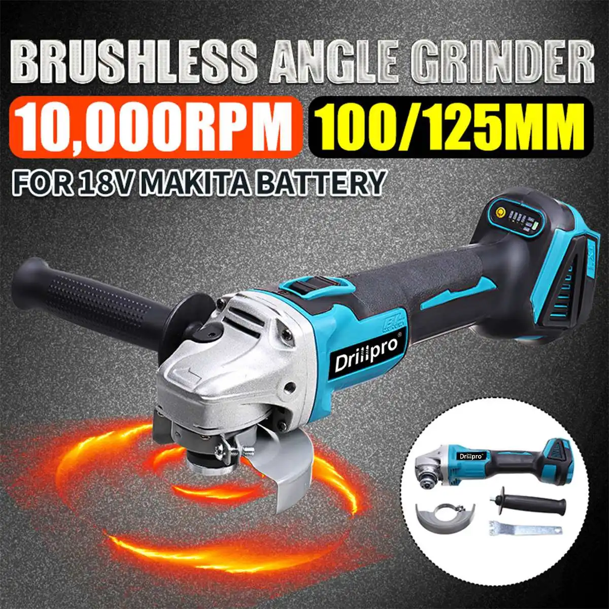 Углошлифовальная машина, 4 скорости, 100125 мм, беспроводная, с бесщеточным Мотором, для аккумулятора Makita 18 в (только инструмент)