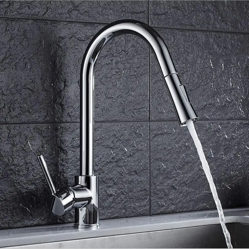 Выдвижной кухонный смеситель, хромированныйзолотистыйникелевый кран...