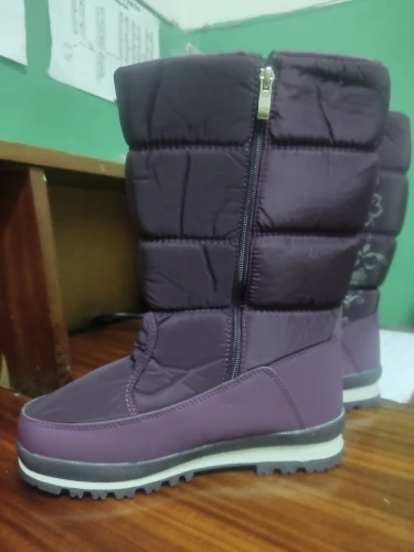 Доставка быстрая. Сапоги среднего качества. Сама бы не купила. Из + : толстый мех. Недостатки: молния тугая, вкладки за молнией нет, снег будет просачиваться, элегантными не назовёшь, грубоваты