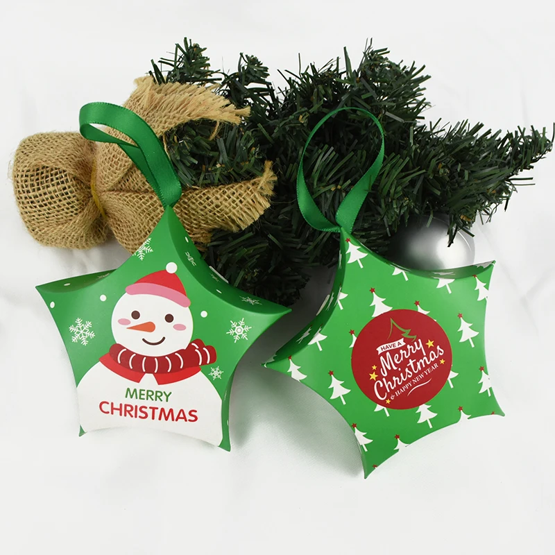 1 шт. бумажная Подарочная коробка, Рождественская коробка для конфет, сумка для рождественской елки, подвесные украшения, рождественские украшения в форме звезды, Санта-Клауса, снеговика