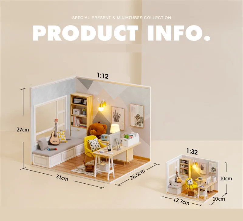 Набор миниатюрных кукольных домиков сделай сам Roombox, модель мале...