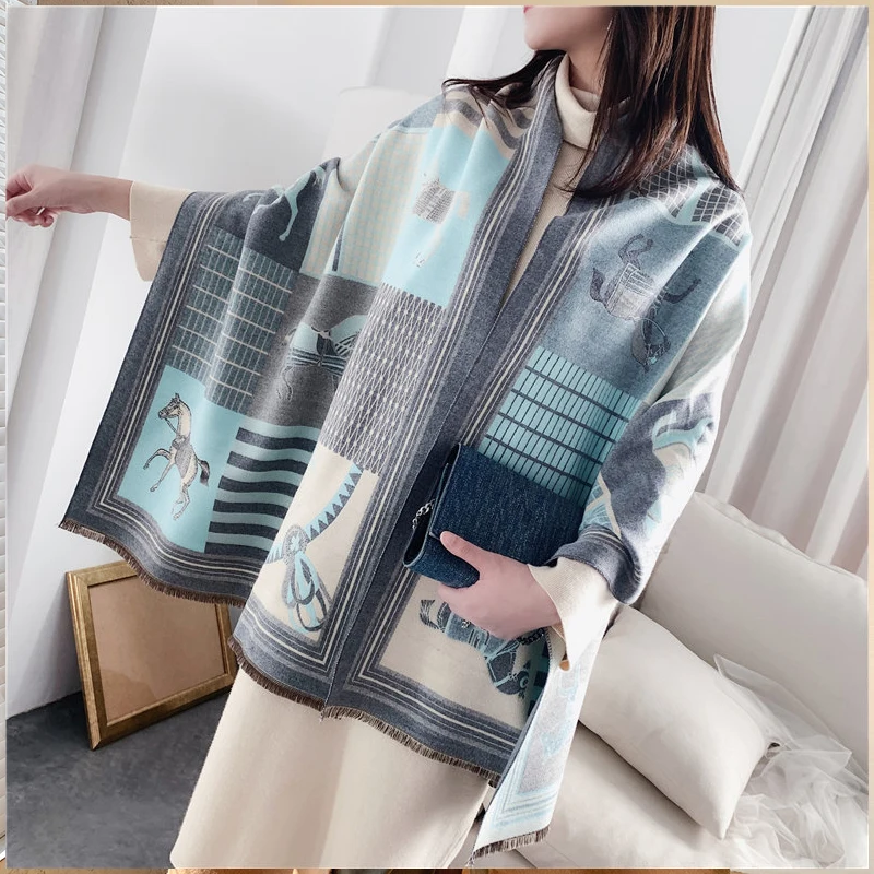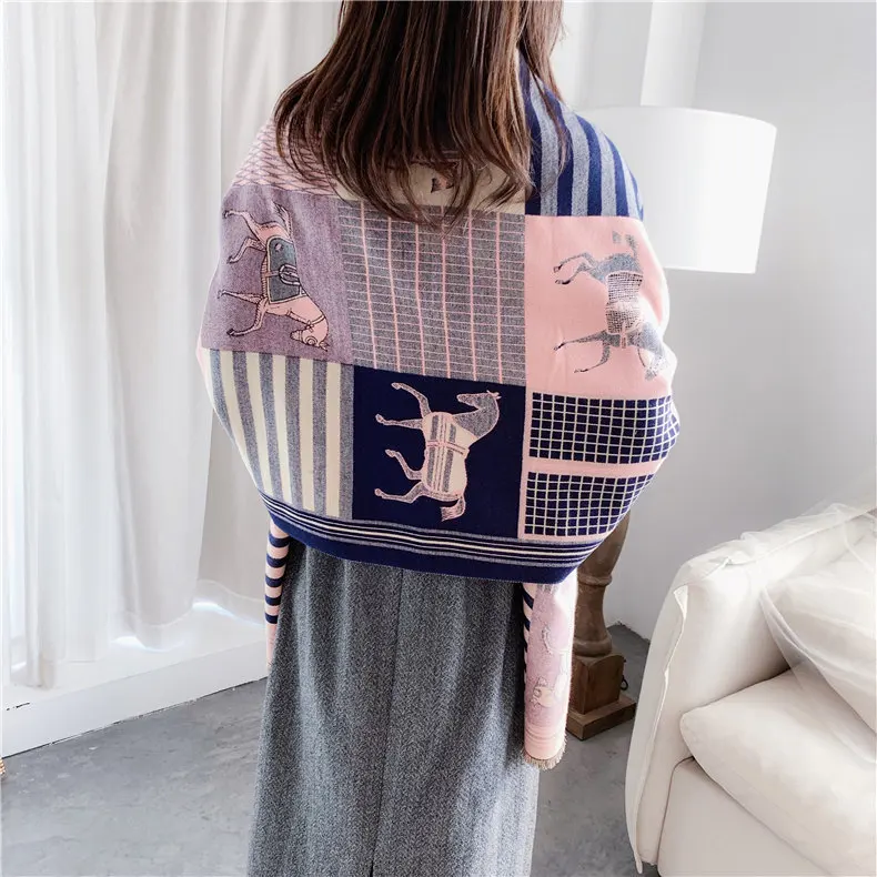 2022 роскошный кашемировый шарф, женские зимние теплые шали и накидки из пашмины, дизайнерские плотные шарфы с принтом лошади