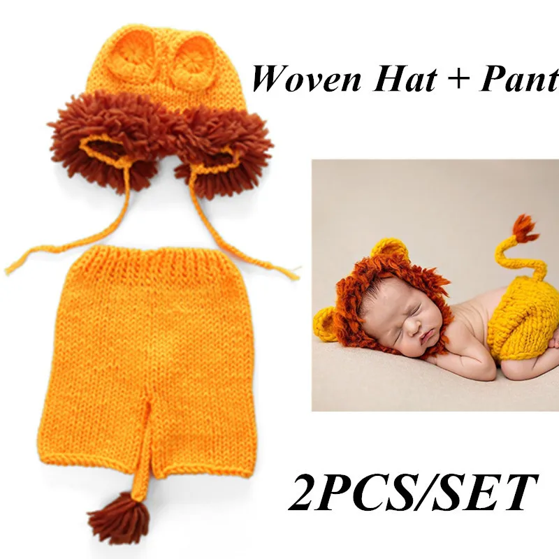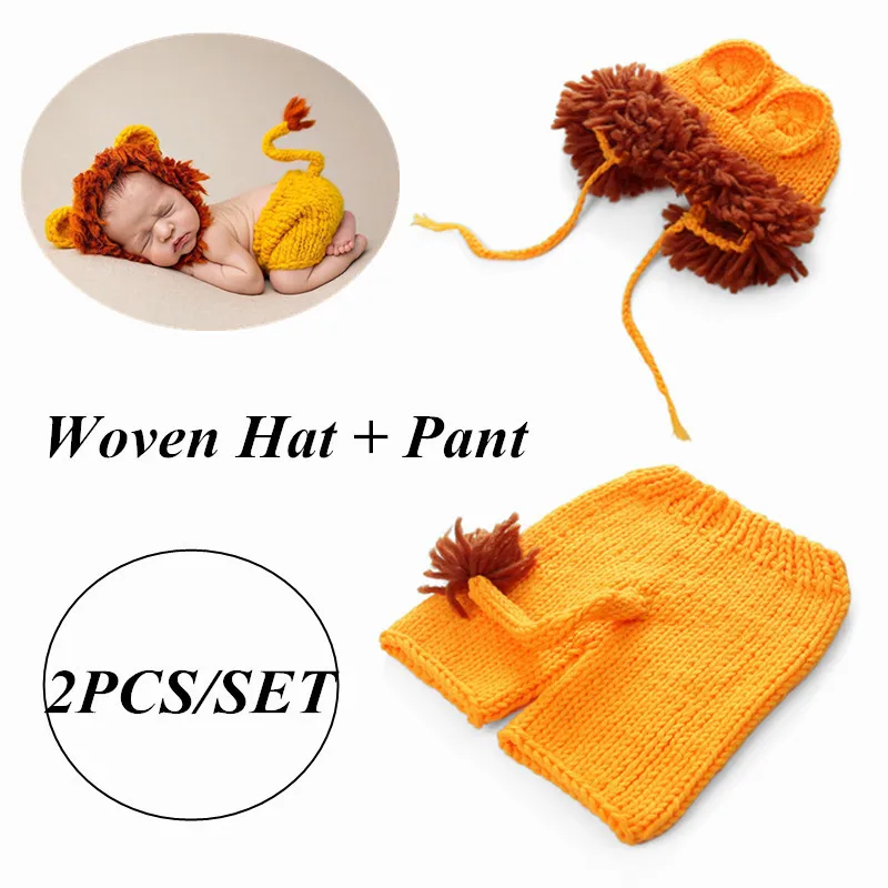 2 шт.компл. SoftNewborn Детские Подставки для фотографий милый рисунок Покрывало русалочка, ручная вязка вязать костюм с изображением Льва, брюк и шапки в рождественском стиле