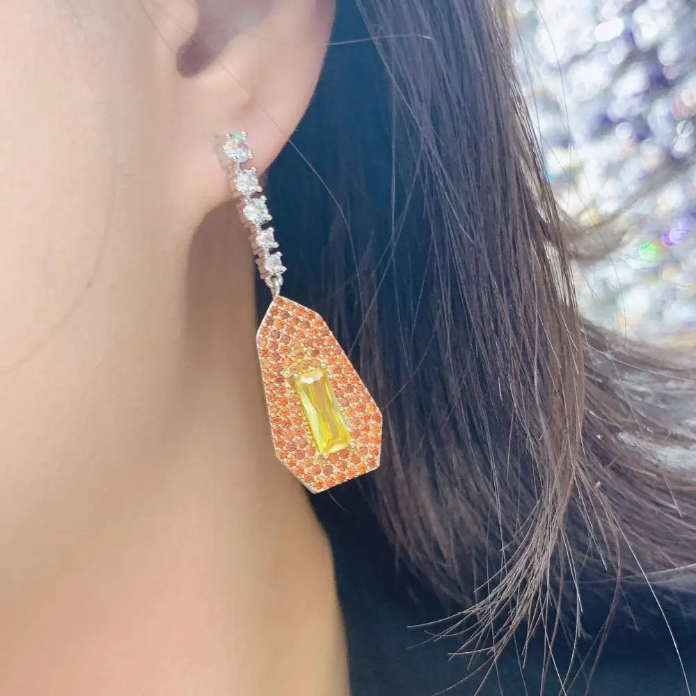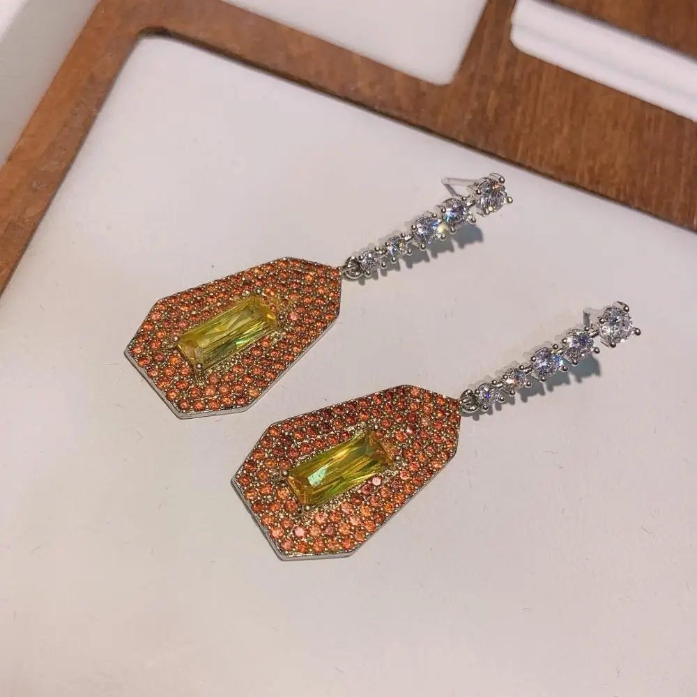 Key WordYellow Cubic Zircon Crystal CZ Drop Dangle Earring For Women