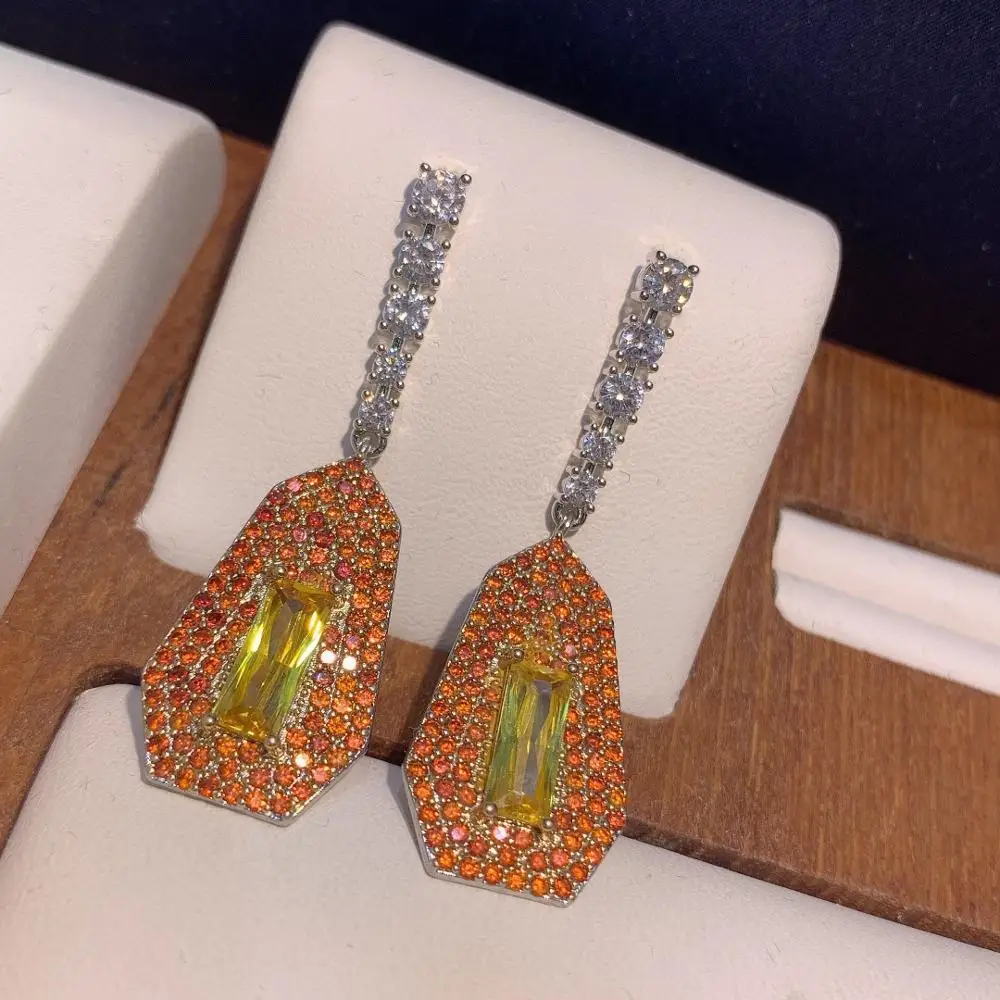 ︎♥ ︎Тип изделия:Женские Висячие серьги с кристаллами из желтого кубического циркония