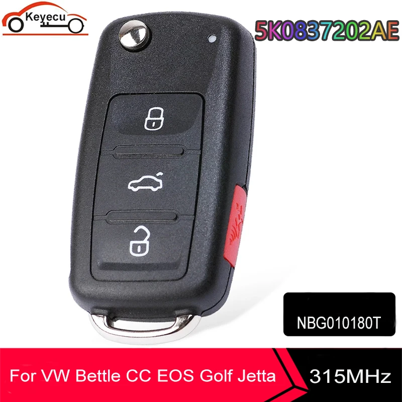 Раскладной Автомобильный ключ KEYECU для VW Bettle CC EOS Golf Jetta Passat Tiguan Touareg 2014 2015 2016 4 кнопки 5K0837202AE 315 МГц