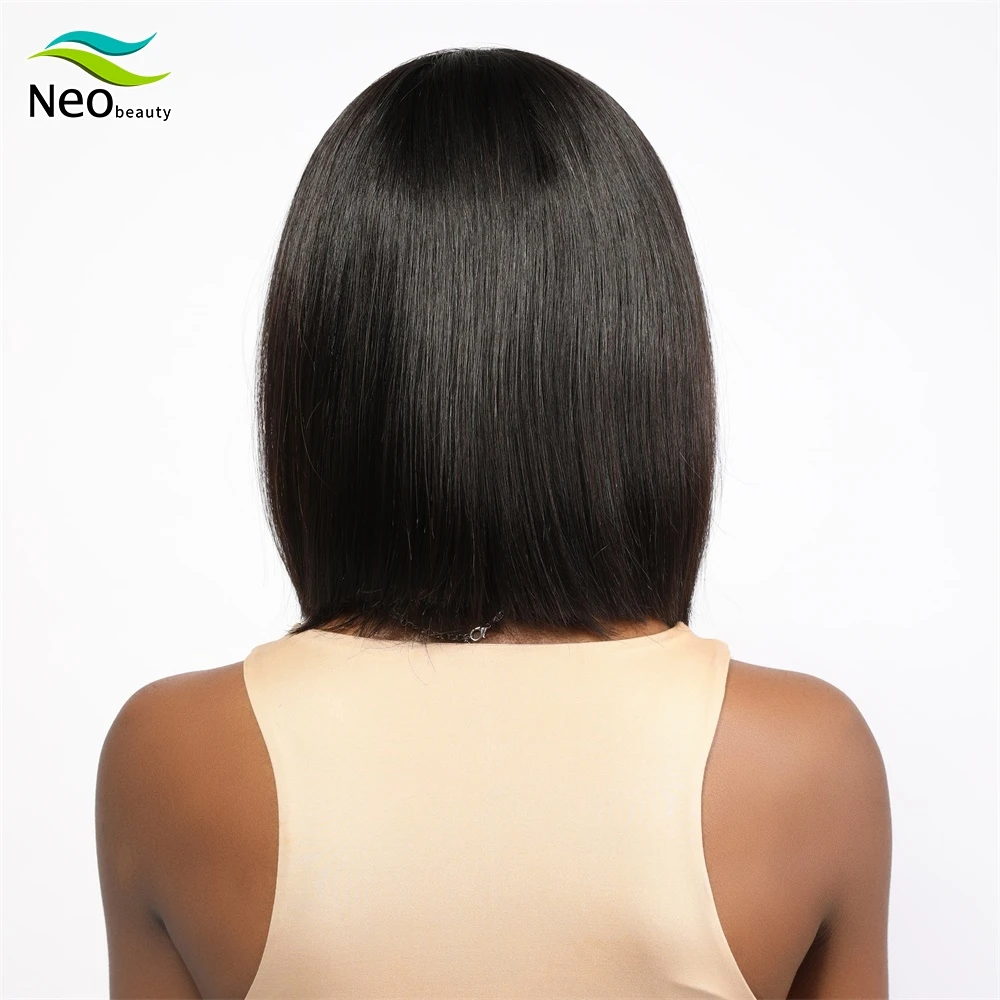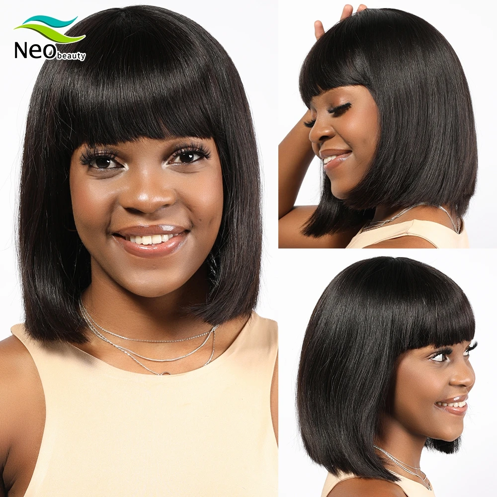 Парик прямой с челкой, недорогие человеческие волосы с тупым куском, с челкой для женщин, бразильские полноразмерные машинные парики для завивки и окрашивания