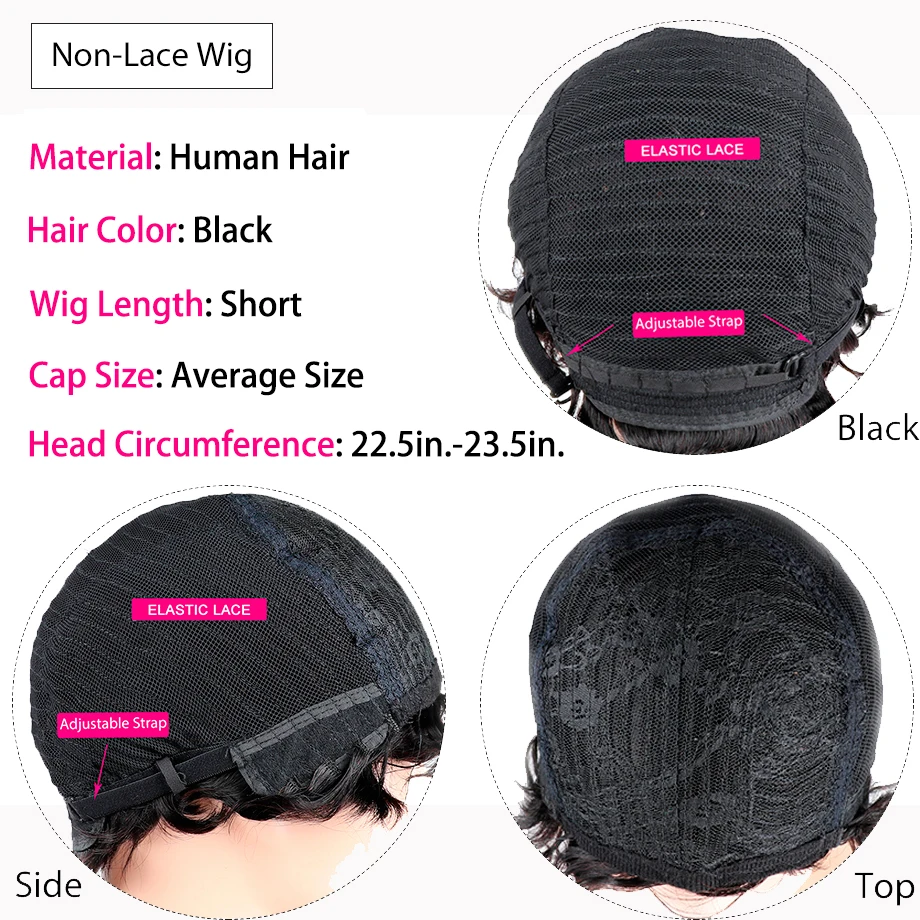 Парик из натуральных черных волнистых волос, 8, 10, 12, 14 дюймов