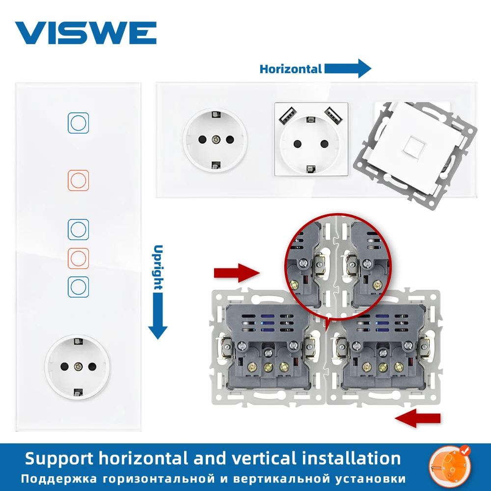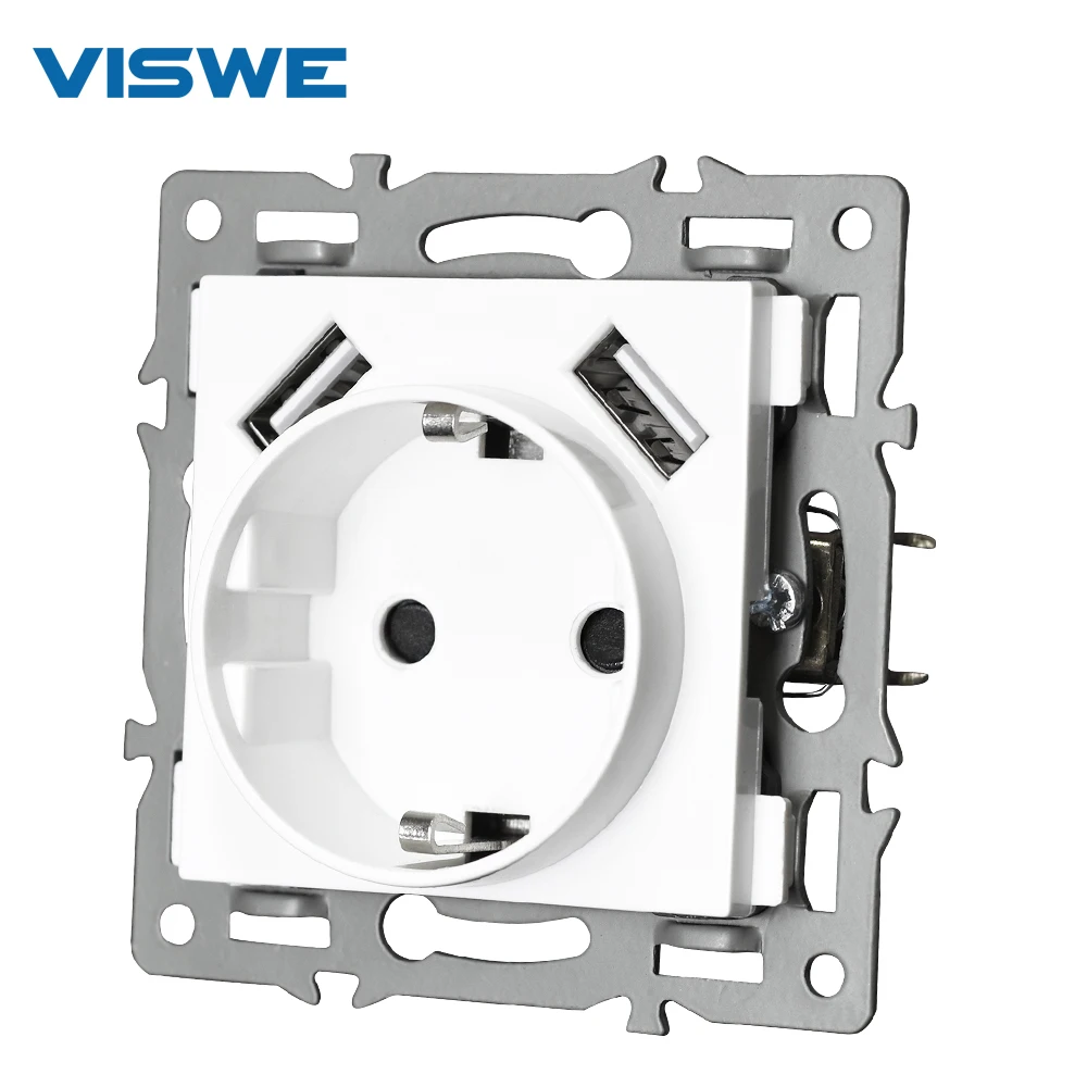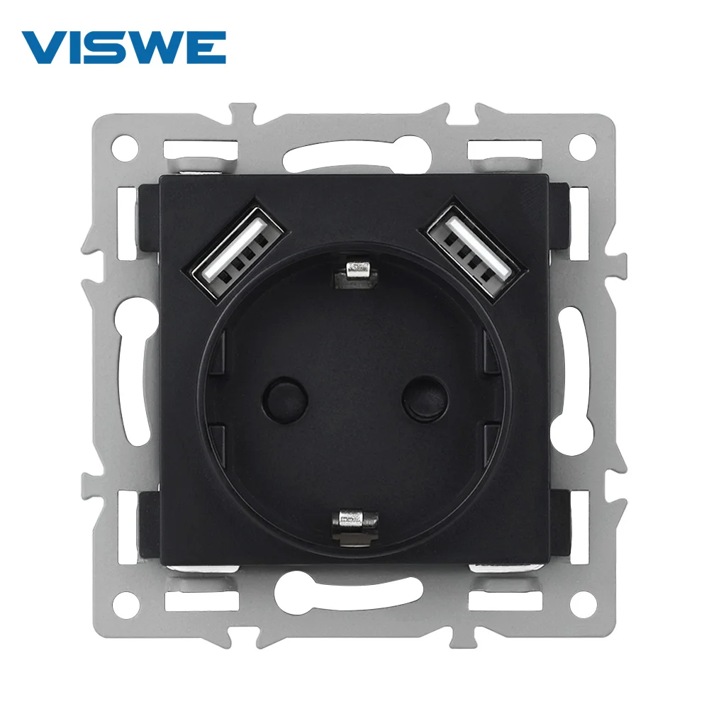 Viswe домашняя электрическая настенная розетка с зарядным устройством, двойной usb-порт 5 в 2 А, декоративная штепсельная вилка, DIY части без панели