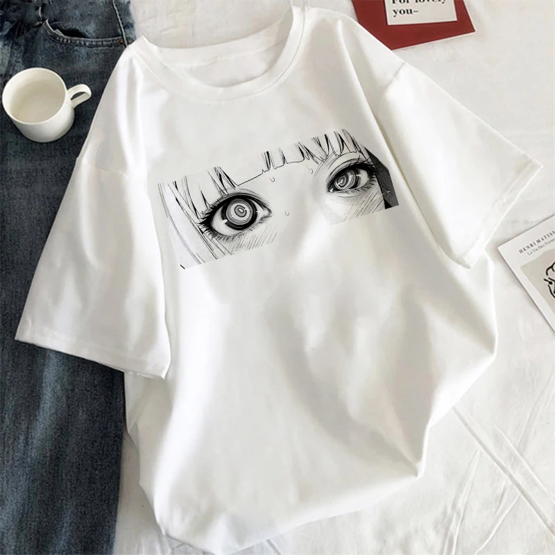 Женская футболка, Милая женская футболка, топ с застенчивой девушкой, оверсайз, женская футболка в стиле Харадзюку, короткая одежда, футболка с аниме