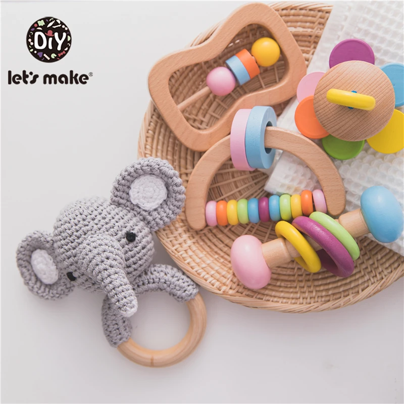 Детские игрушки Let's Make, грызунки, деревянные погремушки, брасле...