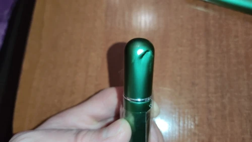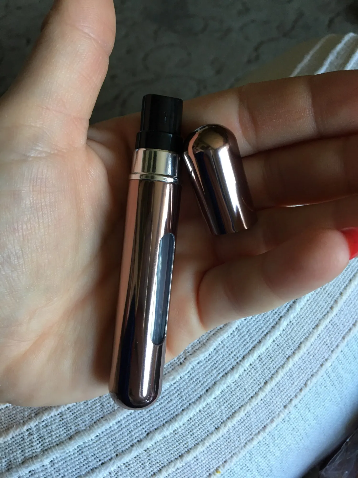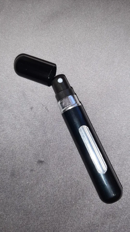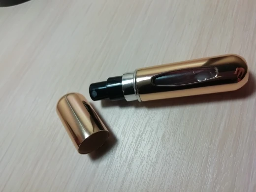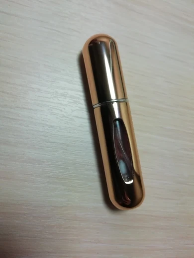 Работает, компактный. Пару нажатий сделала неправильно и духи пошли мимо, но потом наполнились при строго вертикальном положении