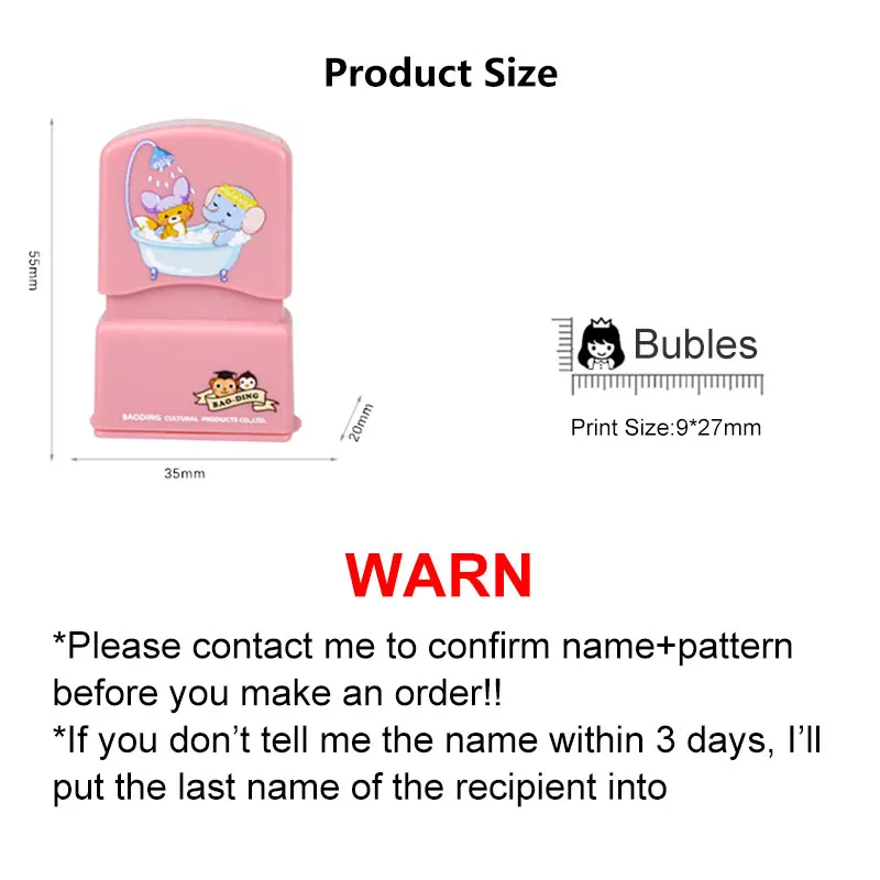 Как сделать таможенная печать? Свяжитесь с нами, Напишите название, рисунок. Например: ребенок + V1/ребенок + 13800000000 + V2 (для достаточной ясности, пожалуйста, укажите имя в 12 буквах) Сначала попробуйте на бесполезной ткани. Подождите 24 часа перед чисткой в первый раз после штамповки После десятков или сотен впечатлений может потребоваться пополнение чернил. Если вы не используете его часто, пожалуйста, не заполняйте слишком много чернил. Не все дополнительные чернила подходят для быстрых штампов. Перед заправкой чернил убедитесь, что чернила подходят для вспышки. Поверхность, которую нужно отпечатать, должна быть гладкой, чтобы избежать непоправимого повреждения штампа. Цвет может отличаться из-за разницы в освещении светильник Примечание Должен сообщить мне имя, чтобы я мог сделать штамп для вас! Не сделай сам! Занимает 2-3 дня подготовки и отправки Если вы не сообщите мне имя в течение 3 дней, я поставлю фамилию получателя в Технические характеристики Размер штампа: 38*19*59 мм Размер знака: 8*27 мм Цвет чернил: черный Цвет печати: розовый, синий Посылка включает: 1 * штамп 1*20 см лента для печати 1 * защитная коробка -Поддержка всех языков (иврит, русский язык в порядке) -Достаточно чернил в штампе, можно печатать более 1000 раз, последние 2-5 лет Занимает 2-5 дней подготовки и отправки Удобно-Этот штамп одежды поможет вам из множества рабочих ярлыков с именами для одежды/рюкзака/униформы/книг/бумажных работ вашего ребенка.