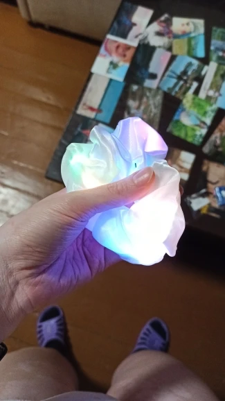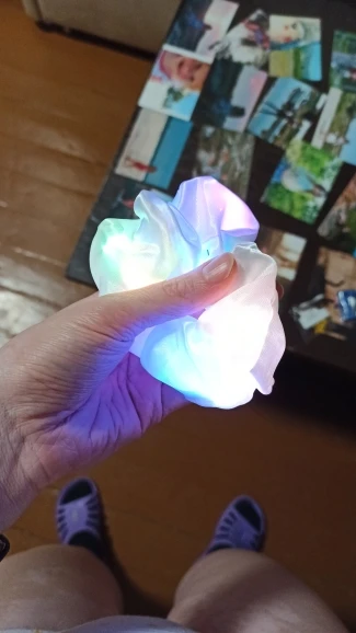 Инструкции нет, пришлось повозиться, чтобы на ощупь понять как и где внутри выдернуть предохранитель ( бумажный язычок), чтобы батарейку активировать, а потом там же есть переключатель- 3режима, как на елочных гирляндах. красиво! Чудо- красота)) Внутри проходит тонкая проволочка. Изделие красивое , но скорее всего ненадолго, посмотрим)