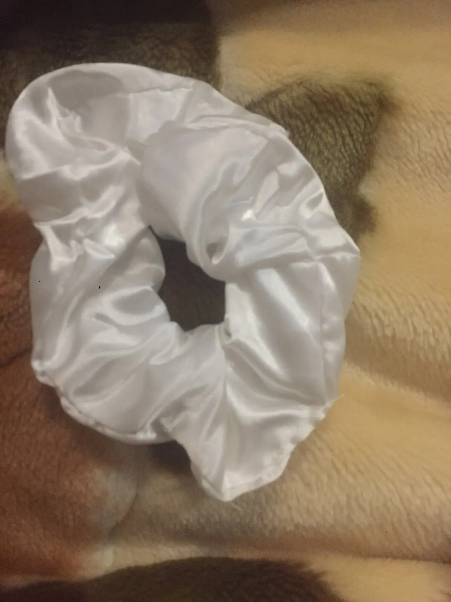 пришло за месяц. обычная белая атласная, внутри вшита фигня какая то светящиеся.