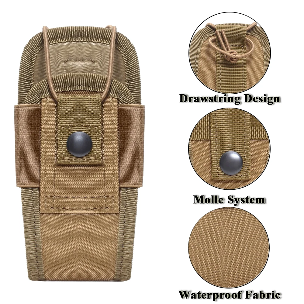 1. Изготовлен из высококачественной водонепроницаемой ткани, отличается прочностью, прочностью, износостойкостью, износостойкостью и длительным сроком службы.2. Разработан с системой Molle и можно повесить на жилет (Тактический), рюкзак или ремень для удобной переноски.3. Размер сумки регулируется эластичной лентой, которая может прочно зафиксировать предметы и легко открыть и закрыть сумку.4. Широко используется для кемпинга, походов, охоты, альпинизма, рыбалки или других видов активного отдыха.5. Это делает ваши руки легко, безопасно и удобно, и он может держать маленькие устройства, такие как телефоны, GPS, рации и портативные радиоприемники, ключи, деньги, EDC инструменты6. Подходит для занятий спортом на открытом воздухе, полиции, пожарных, охранников, первых ответчиков и других костюмов на 8 человек.