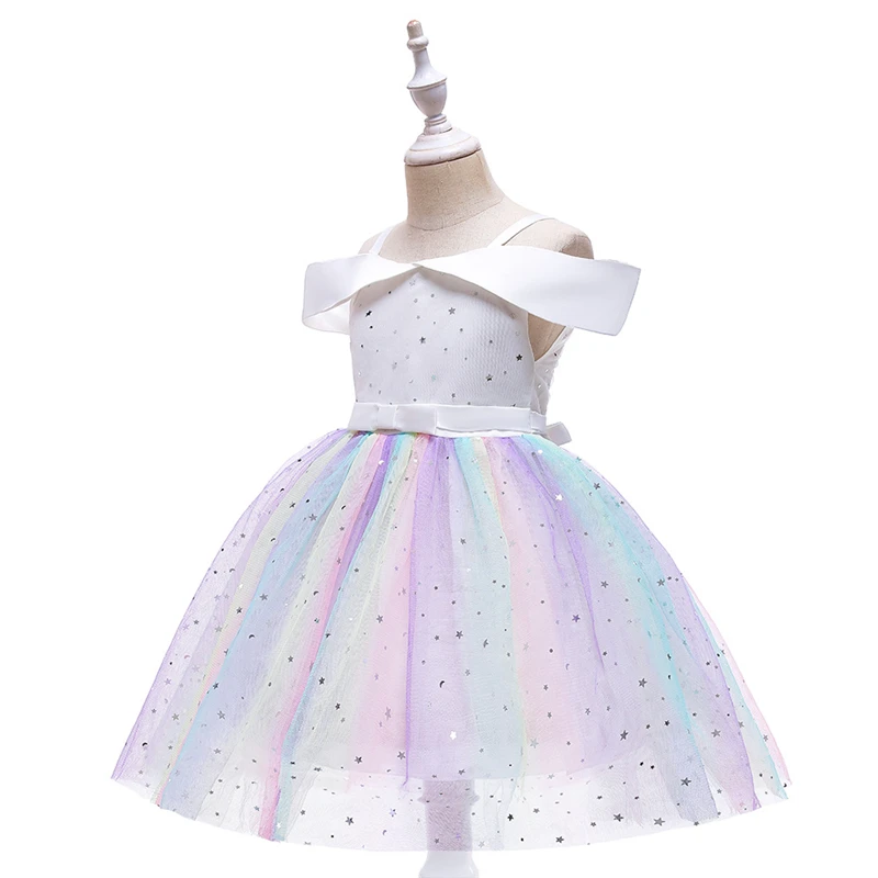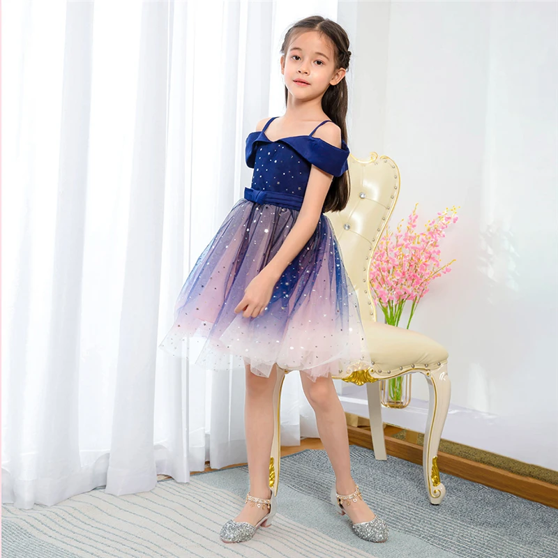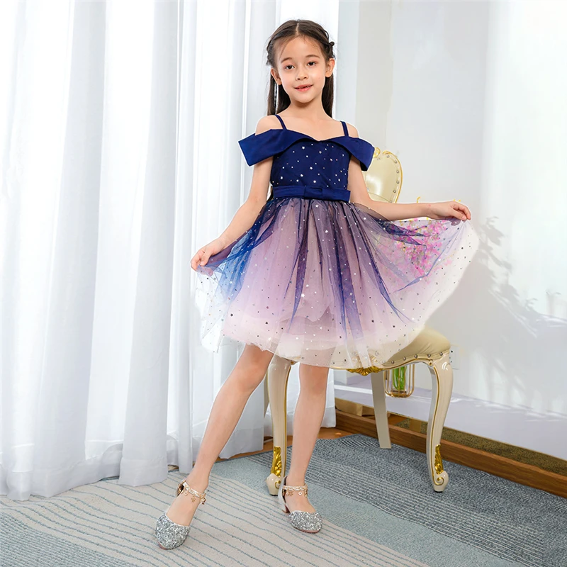 Детское платье Пышное Платье с рисунком звездного неба вечерние платья для девочек на день рождения, свадьбу, платье с цветочным узором для девочек возрастом от 2 до 10 лет