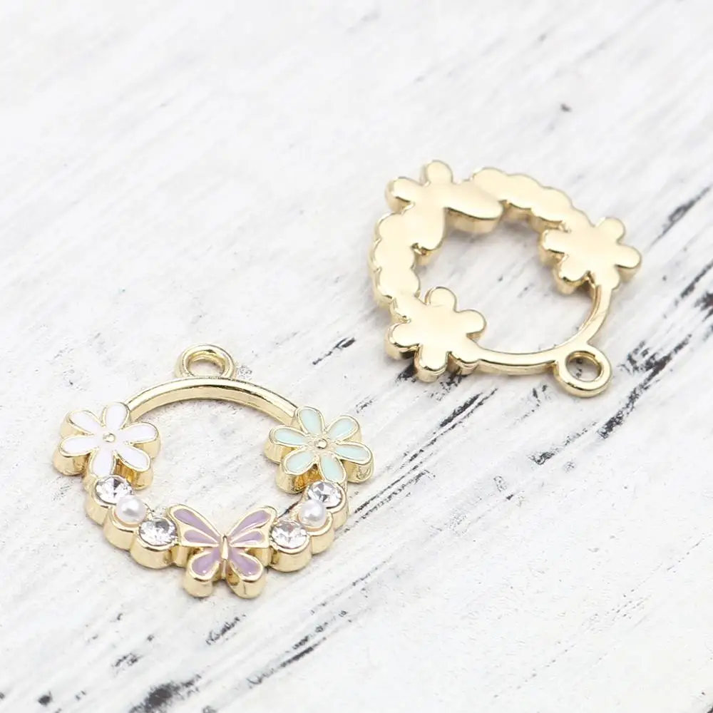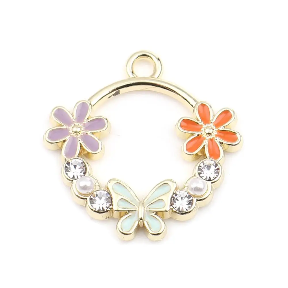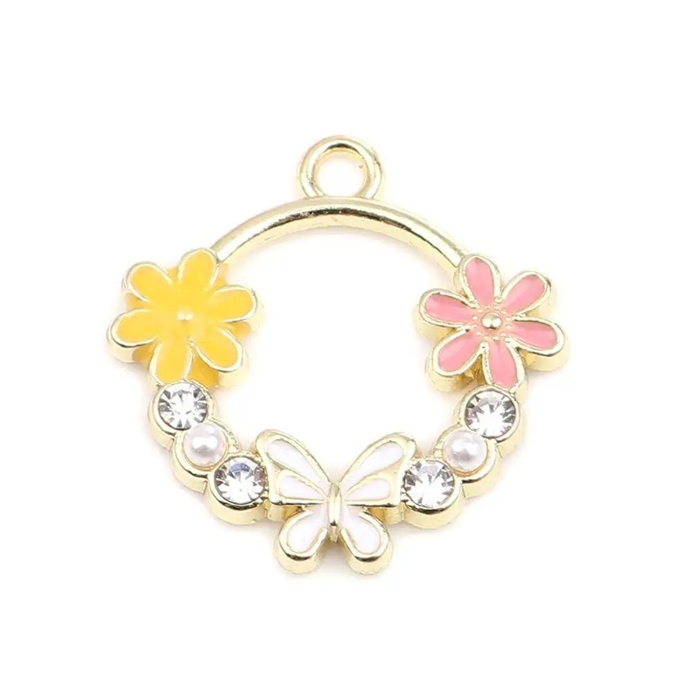 Подвески для ювелирных изделий, позолоченные, розовые, прозрачные, круглые, 24 х20 мм, 5 шт.