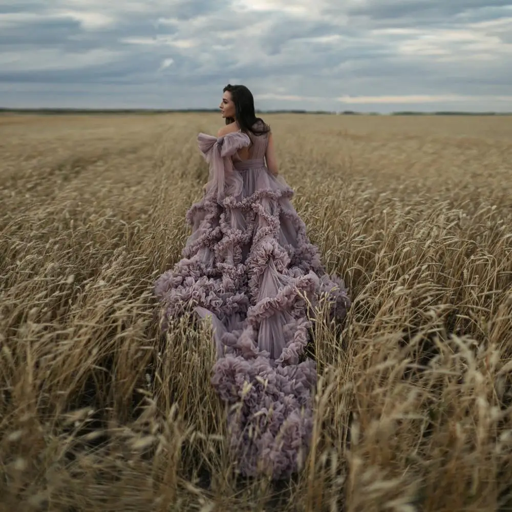 Изготовленное на заказ платье из тюля с оборками в несколько рядов ...