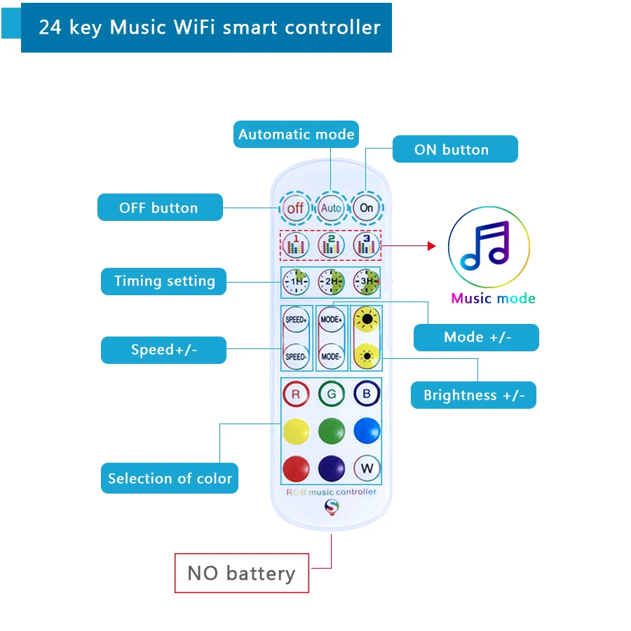 Music Wifi FunctionVoice control, Music mode, APP control, time setting, etc.