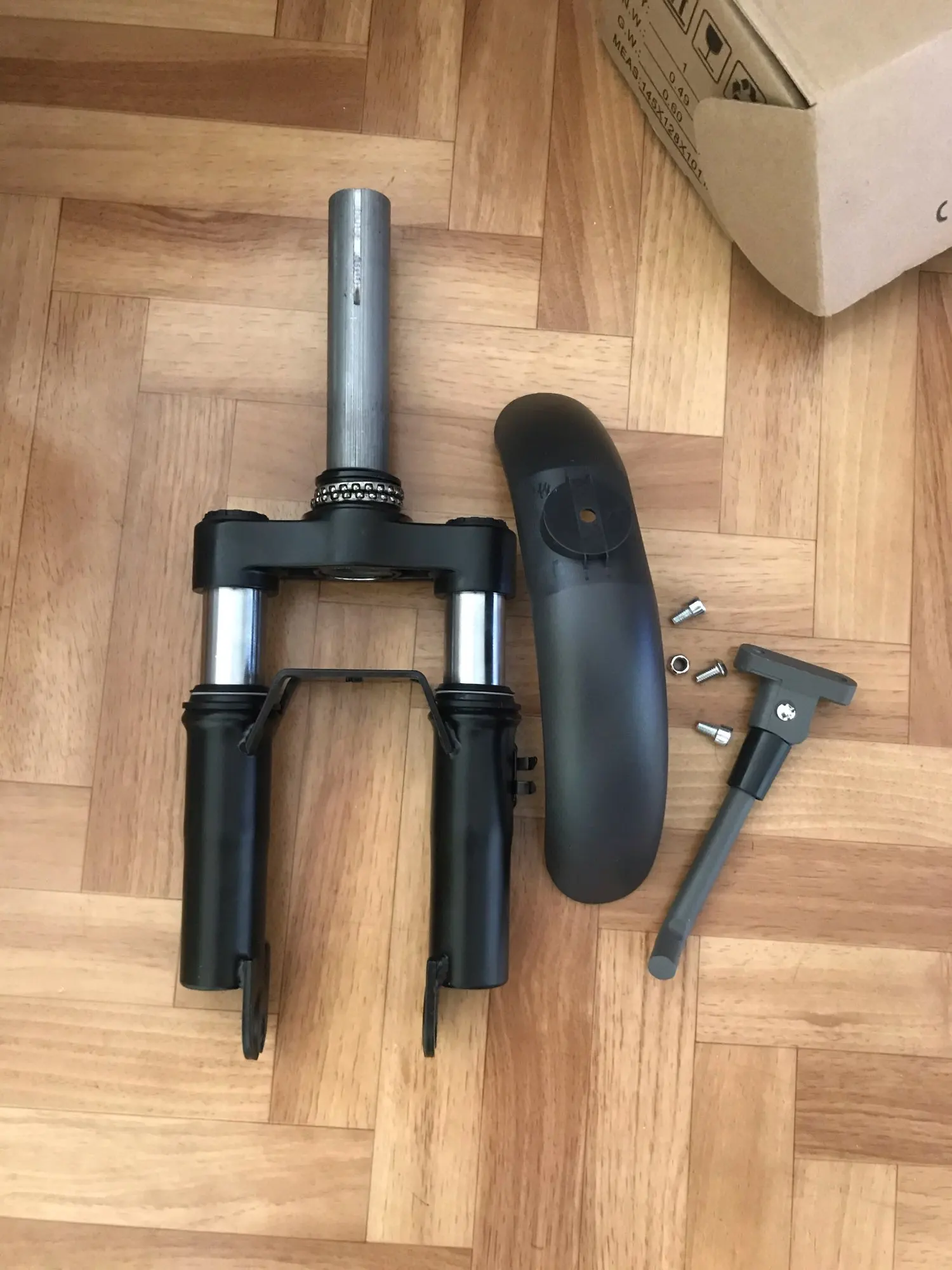 Робяты, вилка хороша! Поставил на Сяокат Про минут за 15 (я криворук). У меня дутые 10-дюймовые шины, всё влезло. Обкатал: мягко, душевно, управление легче и комфортнее. Всячески рекомендую.