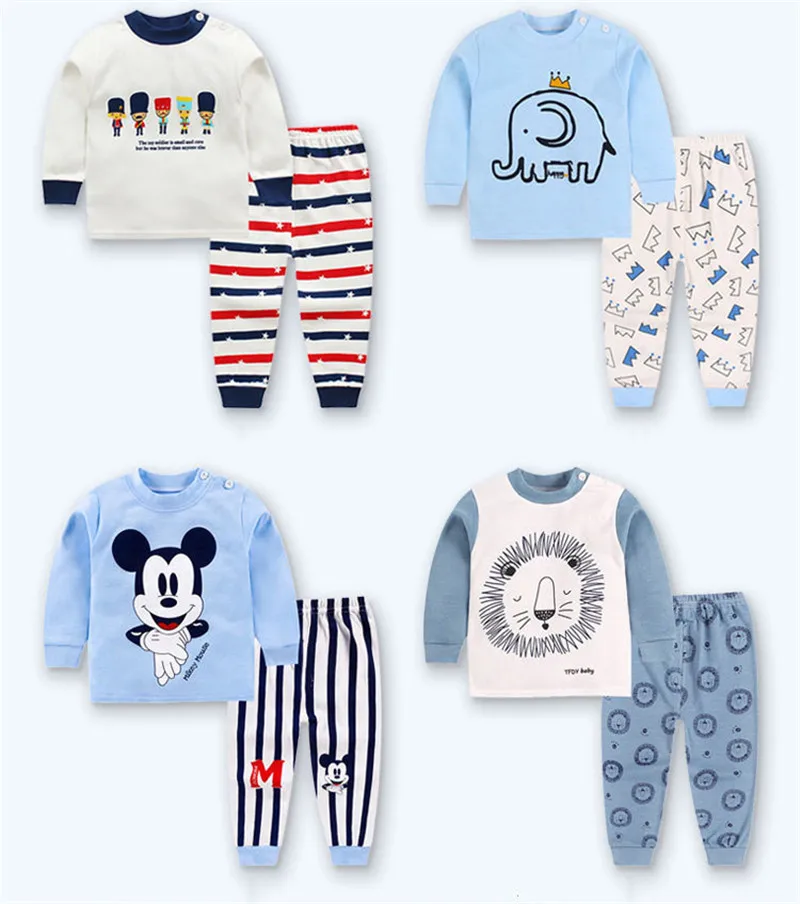 Осенне-весенняя детская одежда, комплект нижнего белья для девочек и мальчиков, хлопковая осенняя одежда, одежда для сна из двух предметов для мальчиков