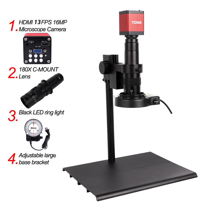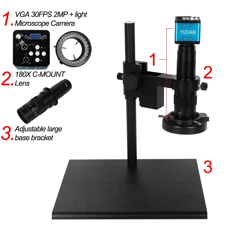 Лидер продаж, большой штатив, монокулярный микроскоп + цифровая камера HDMI VGA 38 мп + 180X объектив светодиодный светильник ка для ремонта, пайки телефона