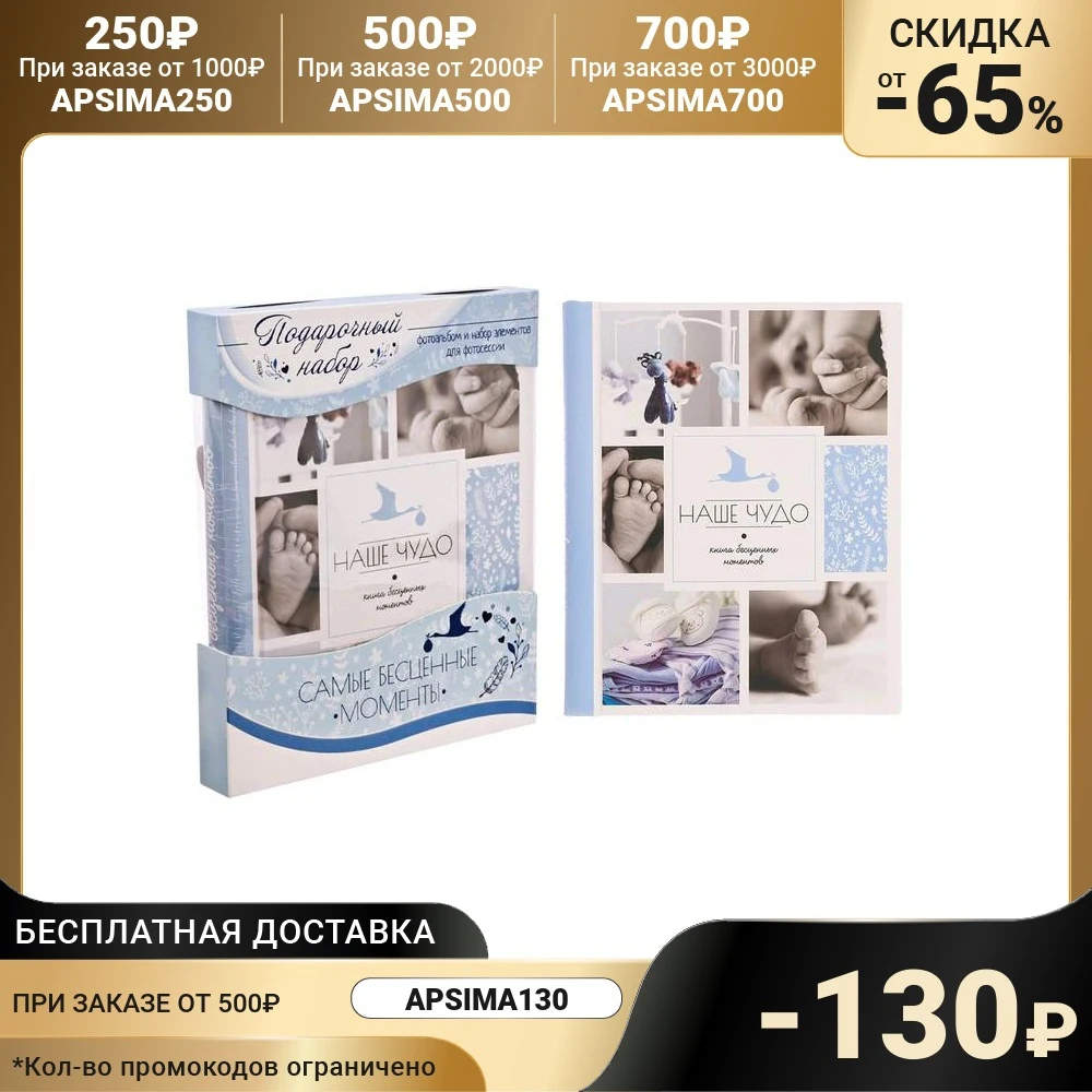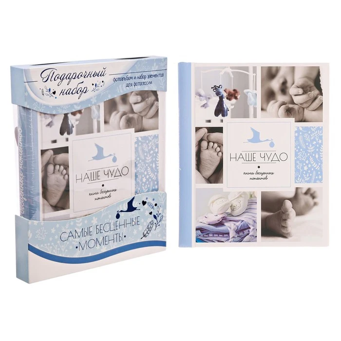Подарочный набор для мальчика "Наше чудо": фотоальбом на 20 магнитных листов и аксессуары для фотосессии