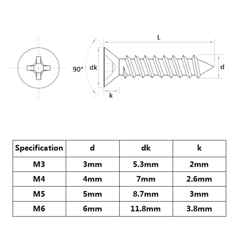 M3-M6 серебряные винты из нержавеющей стали для древесины из ДСП полностью резьбовые крестовые с потайной головкой самосверлильные запасные части 4g 6g 8g Scre