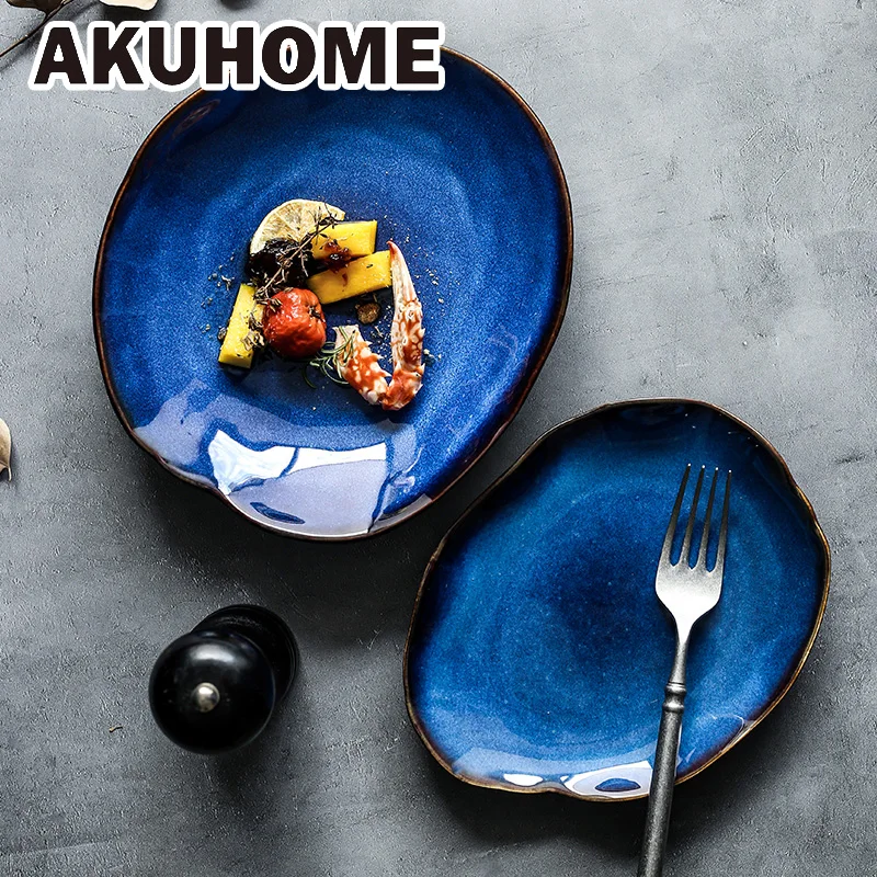 Керамическая тарелка, серия нестандартных блюд, Западная тарелка для еды, европейская синяя глазурь, салатник, основное блюдо, кухонные принадлежности