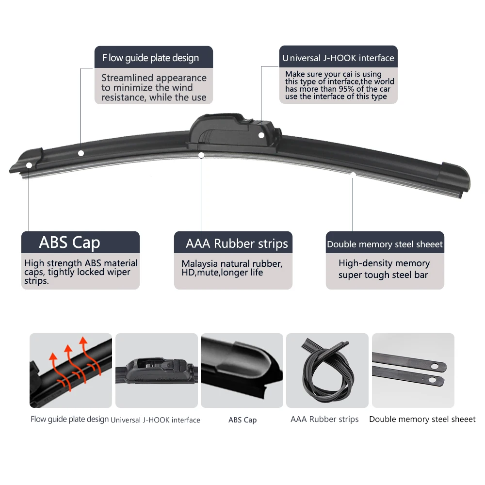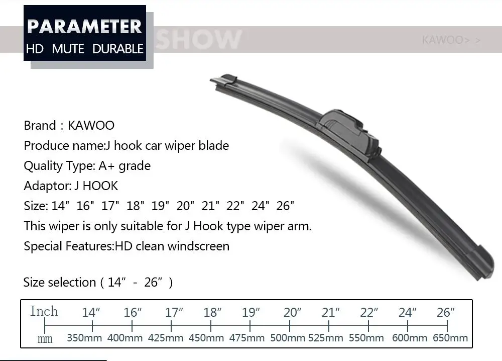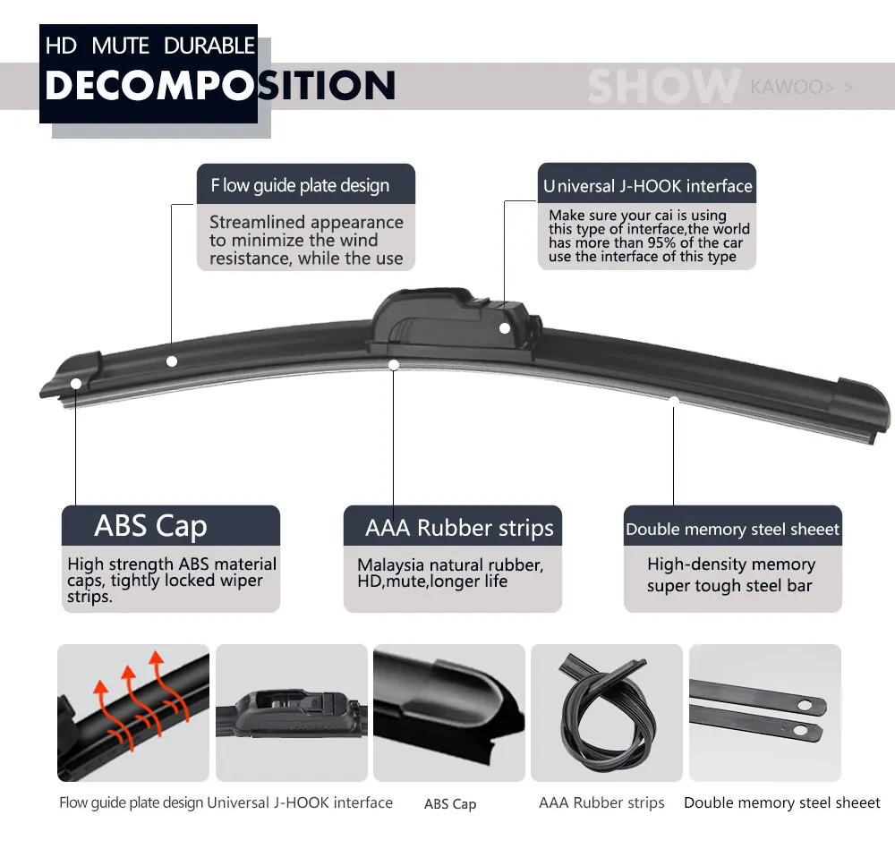 Щетка стеклоочистителя автомобильные щетки KAWOO, U-Образный Крючок, Универсальные бескаркасные резиновые салфетки для лобового стекла, 14, 16, 17, 18, 19, 20, 21, 22, 24, 26, 28 дюймов