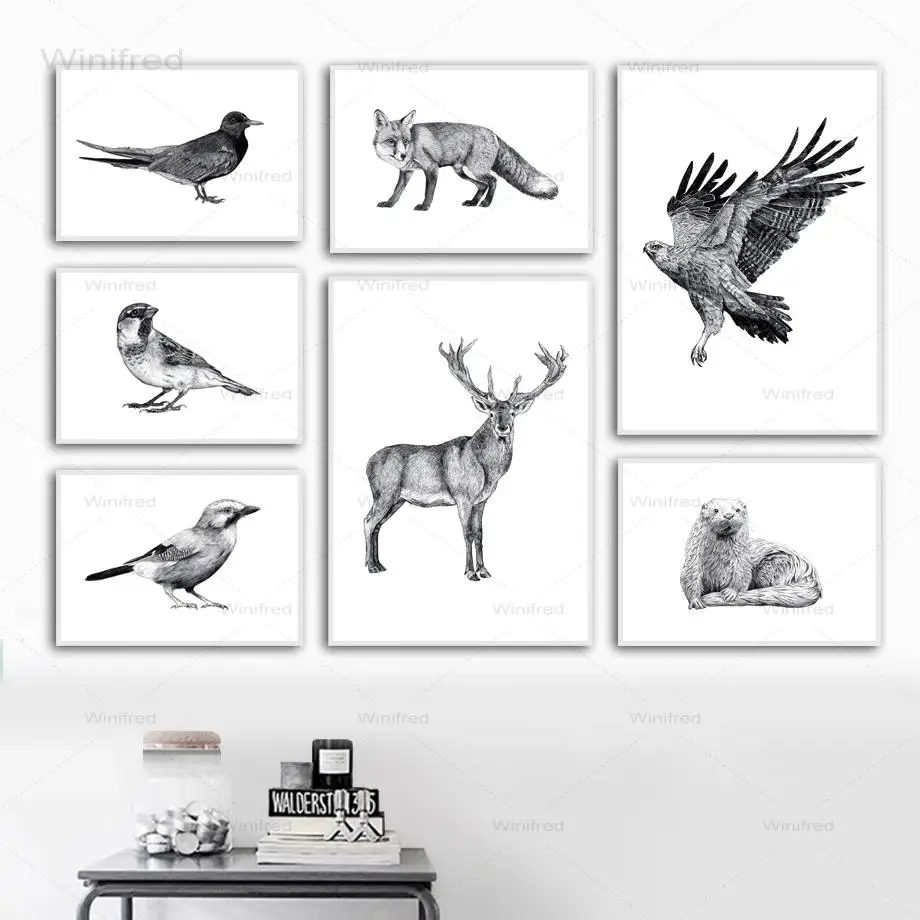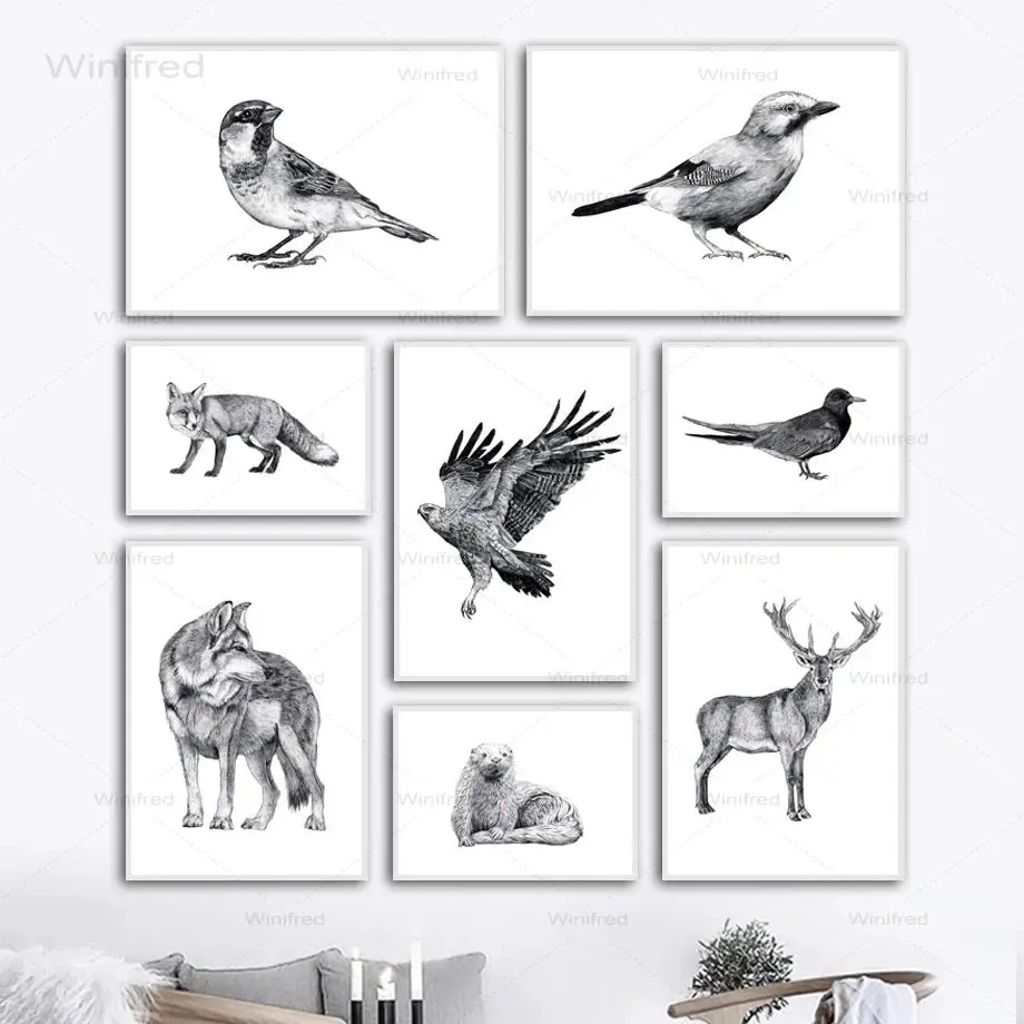Картина с изображением птиц черно-белых животных, холст, картина с колибри, фотография, скандинавский настенный постер, домашний декор