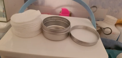 Баночка чётко по размеру ватного диска. Специально такую искала для коротких поездок в путешествия. Из супер-лёгкого алюминия, в закрытом виде абсолютно герметична (можно набрать воды и трясти как шейкер - не пролилось ни капли). Внутрь стопкой влезает максимум 12 ватных дисков. Я беру две таких банки, пропитываю ватные диски в одной банке мицелярной водой, а во второй - тоником. Это позволяет мне сэкономить место в ручной клади и уменьшить вес рюкзака. На поездку в 5-6 дней вполне достаточно. Так же туда как в мыльницу удобно влезают круглые отельные мыла. В отдельной банке я ещё беру крем для лица и умывалку. Легко выскабливать, легко мыть, не протекают, не окрашиваются, . Не банки, а находка.