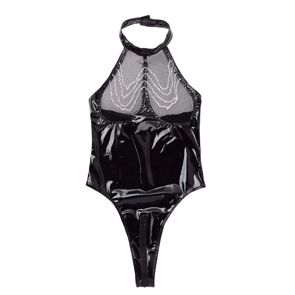 Сексуальное боди из лакированной кожи, Цельный купальник, женское М...