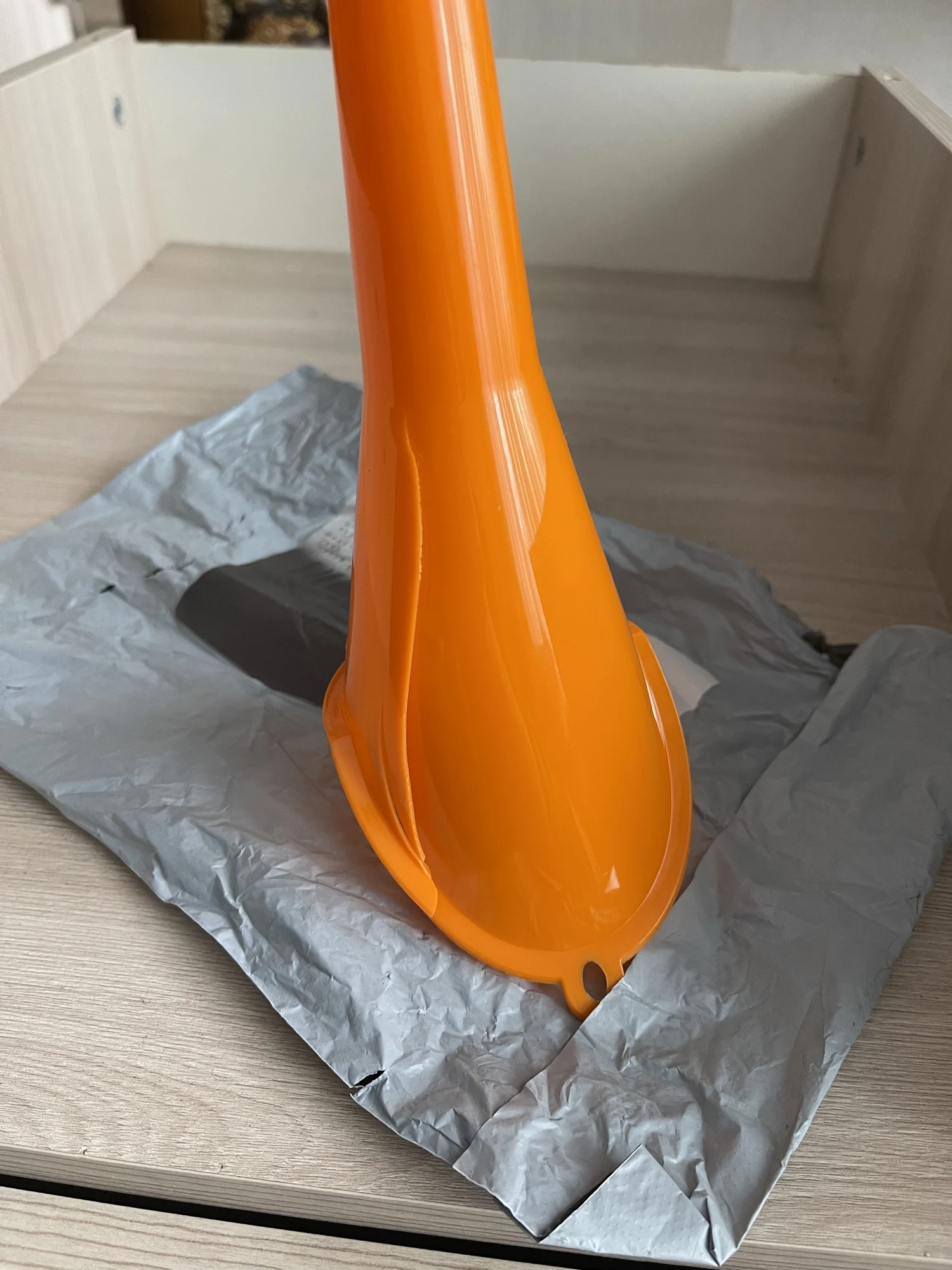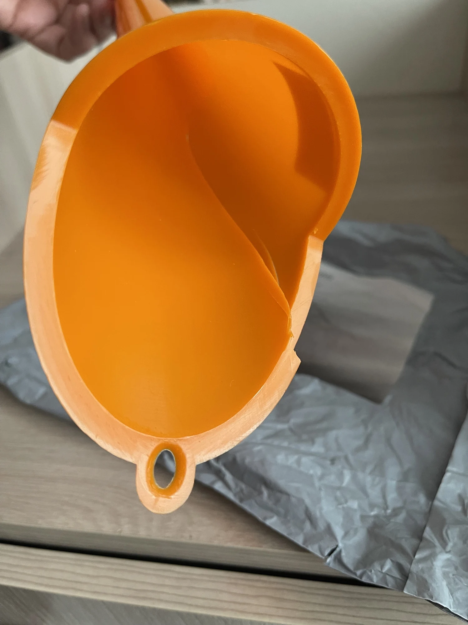 Воронка в пакете. Не удивительно, что раздавленная пришла. Открыл диспут на полный возврат. Продавец хочет, чтобы товар был обратно отправлен, иначе никакого возмещения. В эту идиотскую игру не играю. Заказывать ли что-то здесь? - решайте сами.