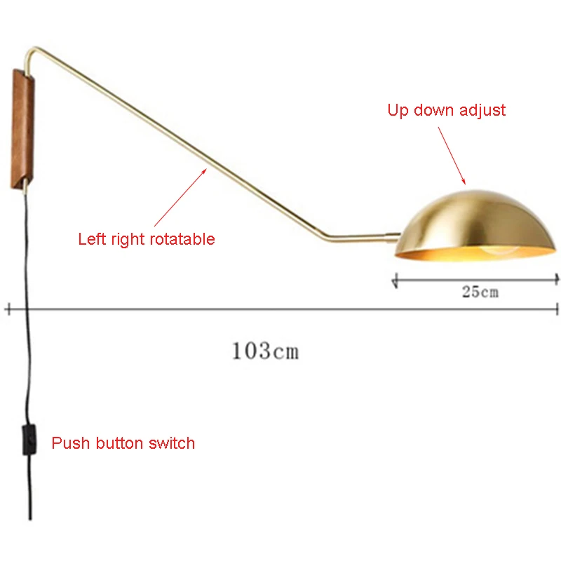 Настенный светильник Artpad, из металла, с поворотным длинным кронштейном, для гостиной, дивана, настенный светильник с деревянным основанием
