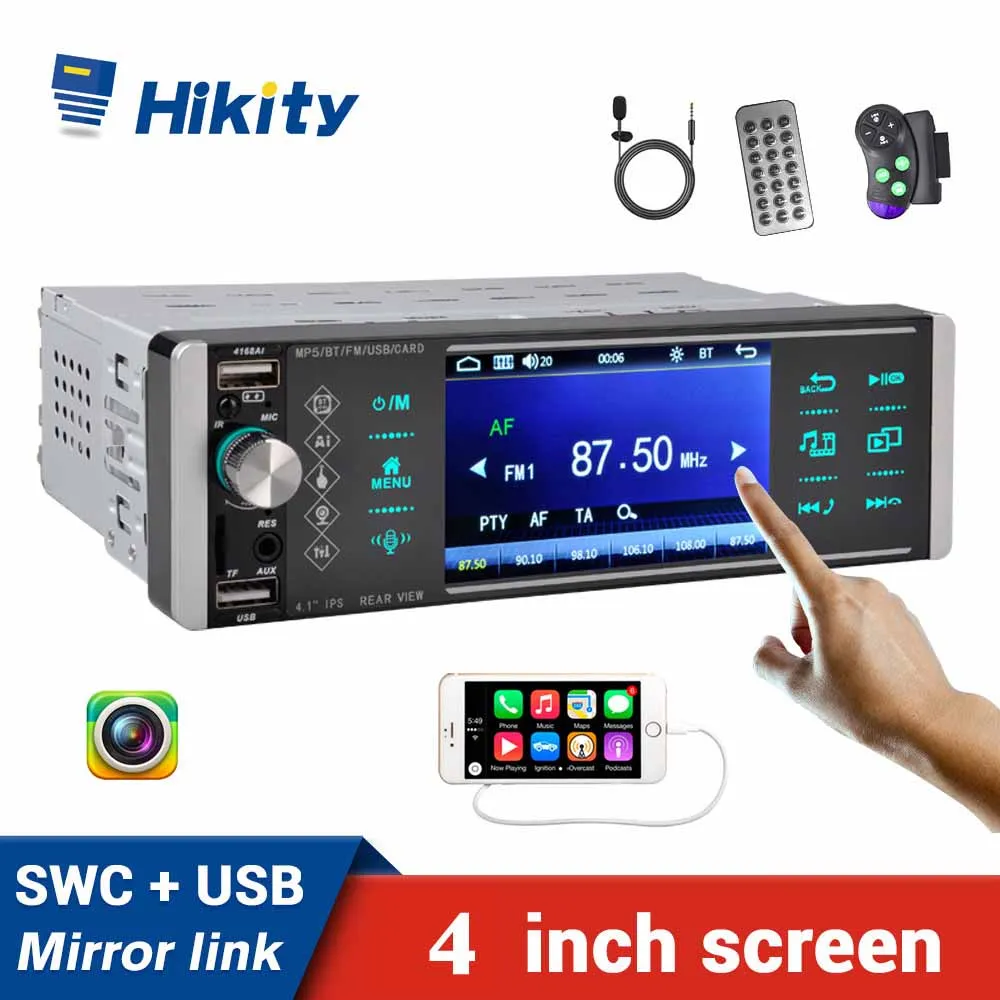 Hikity 4618 автомобильное радио Bluetooth 1 din 4 ''сенсорный экран MP5 видео с AI голосовым помощникомПлеер FM стерео приемник 4-USB ISO Mirrorlink